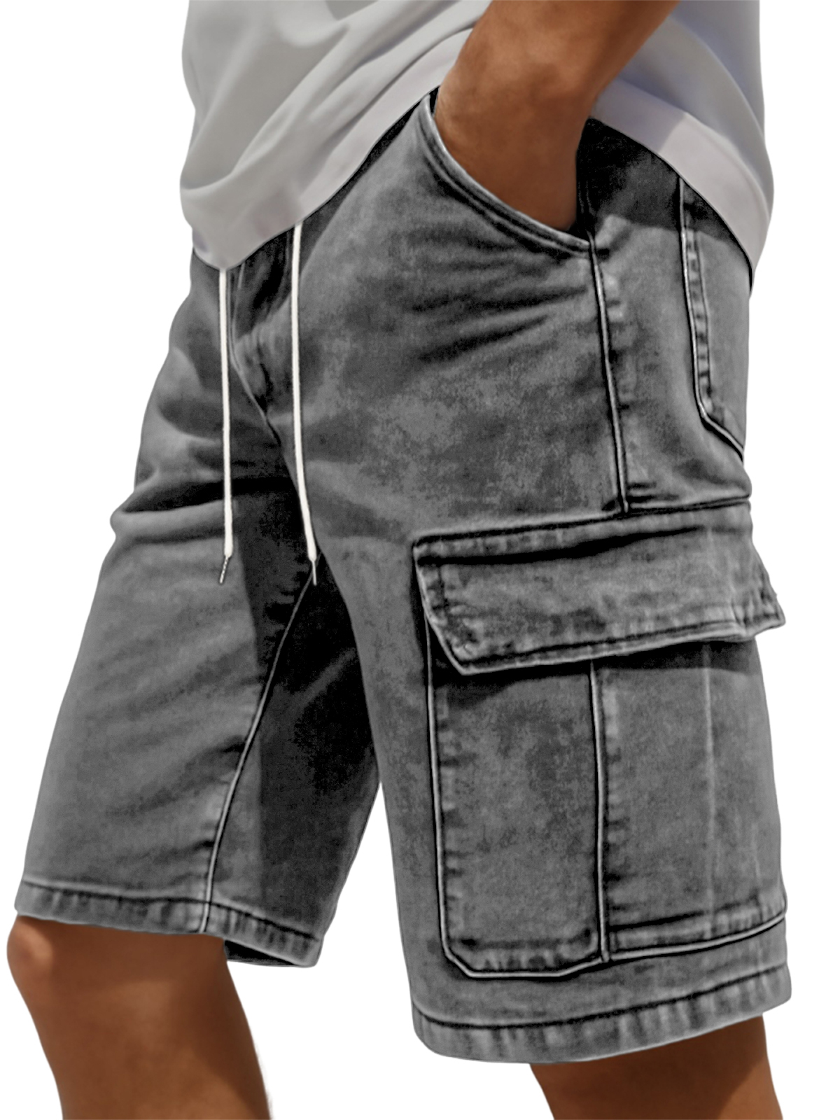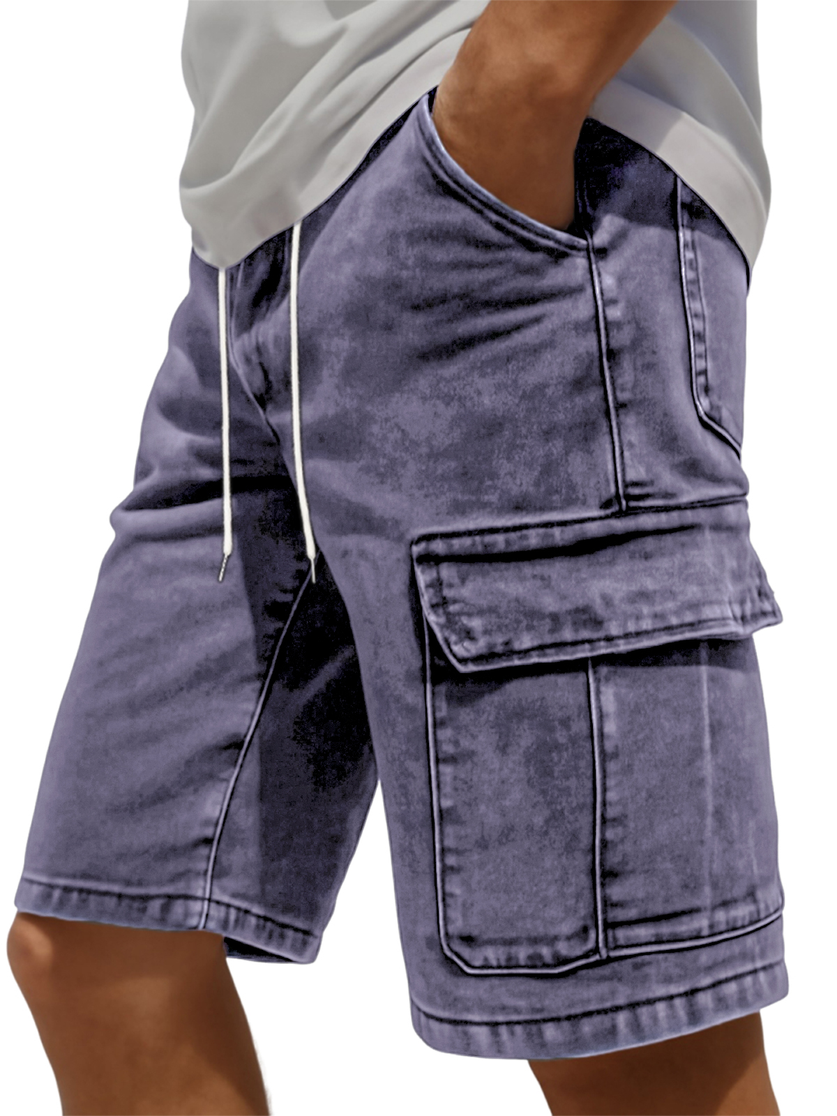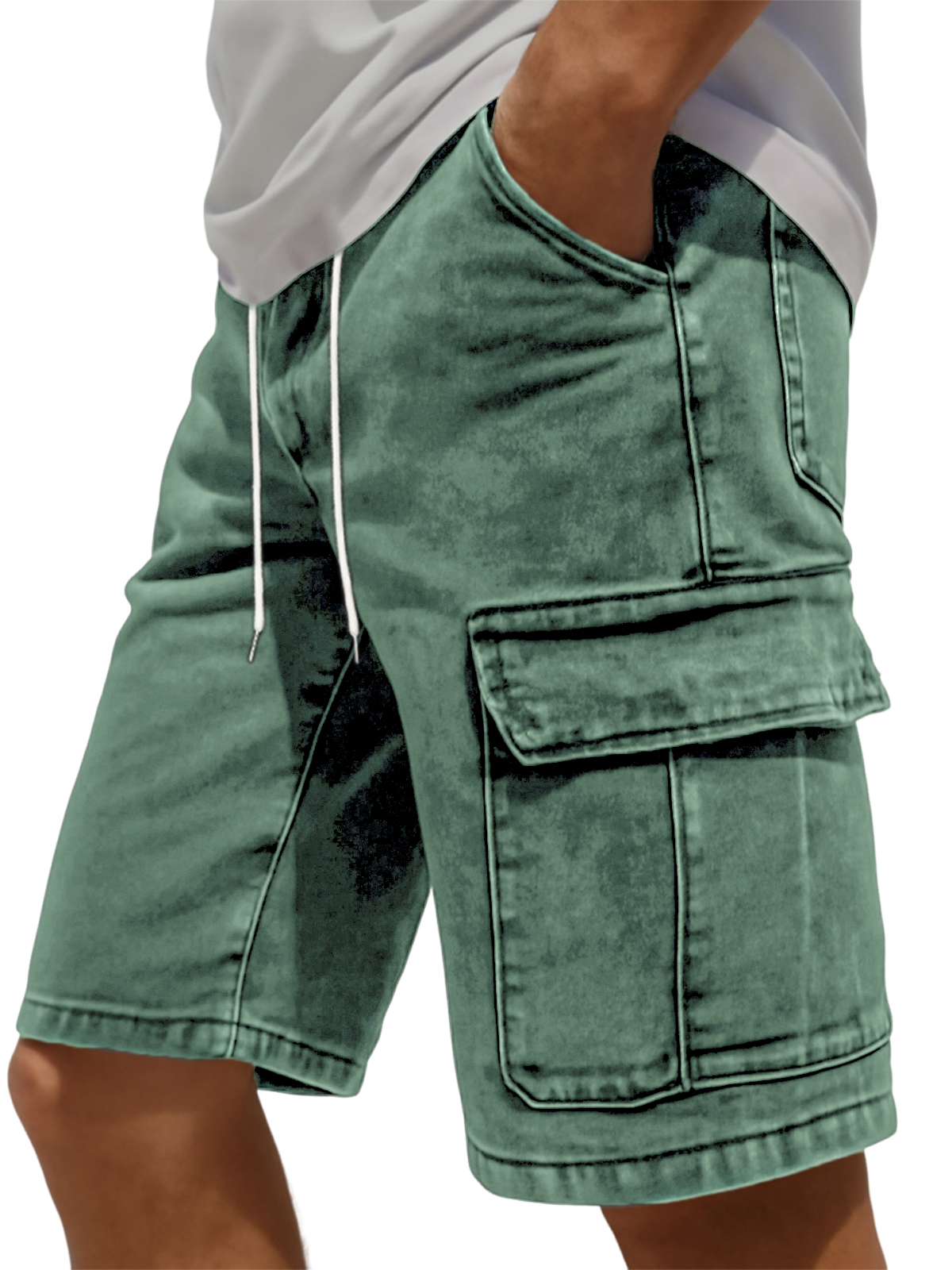 Men's Stylish Retro Cargo Shorts with Multiple Pockets and Lace-up Casual Shorts