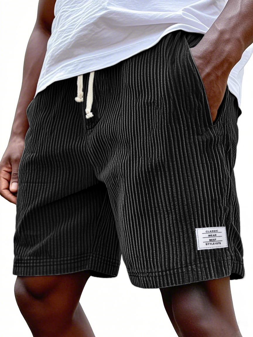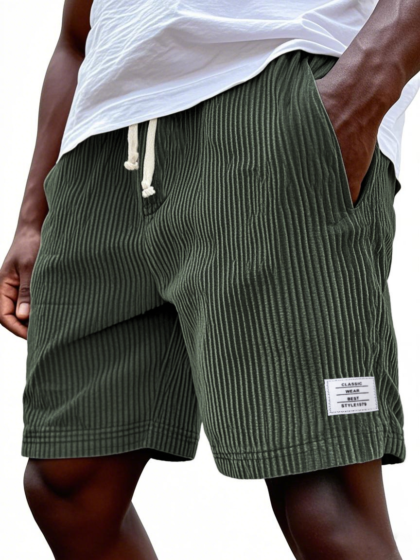 Men's Stylish Ribbed Simple Embroidered Corduroy Loose Lace-up Casual Shorts