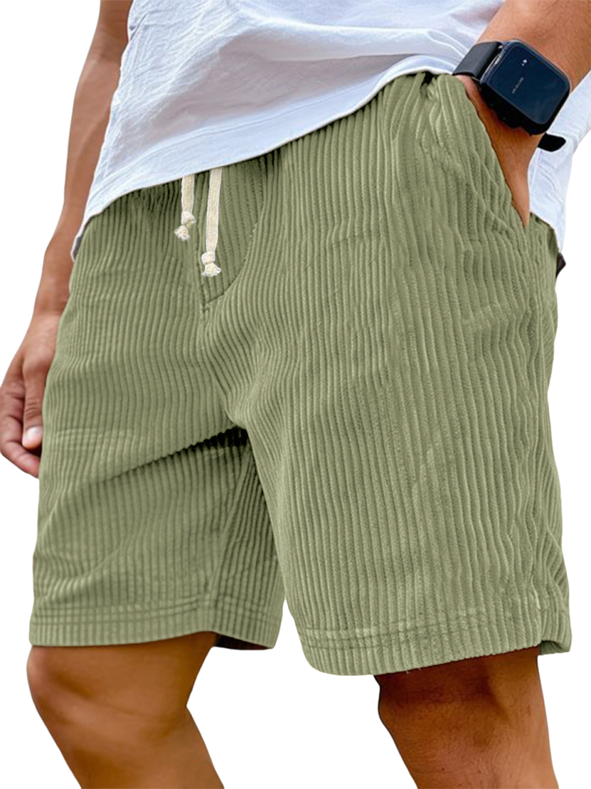 Men's Stylish Ribbed Vertical Striped Corduroy Loose Lace-up Casual Shorts