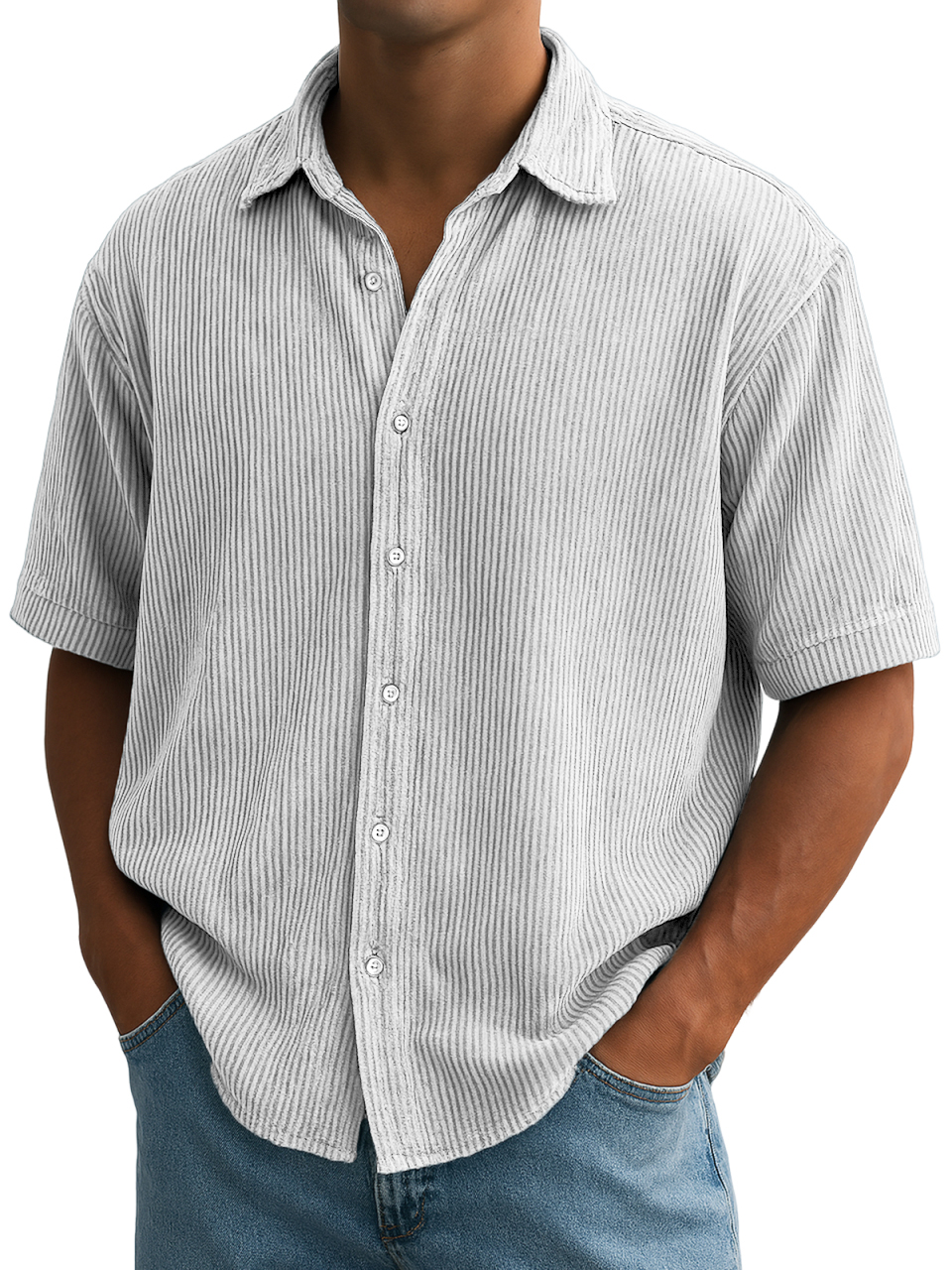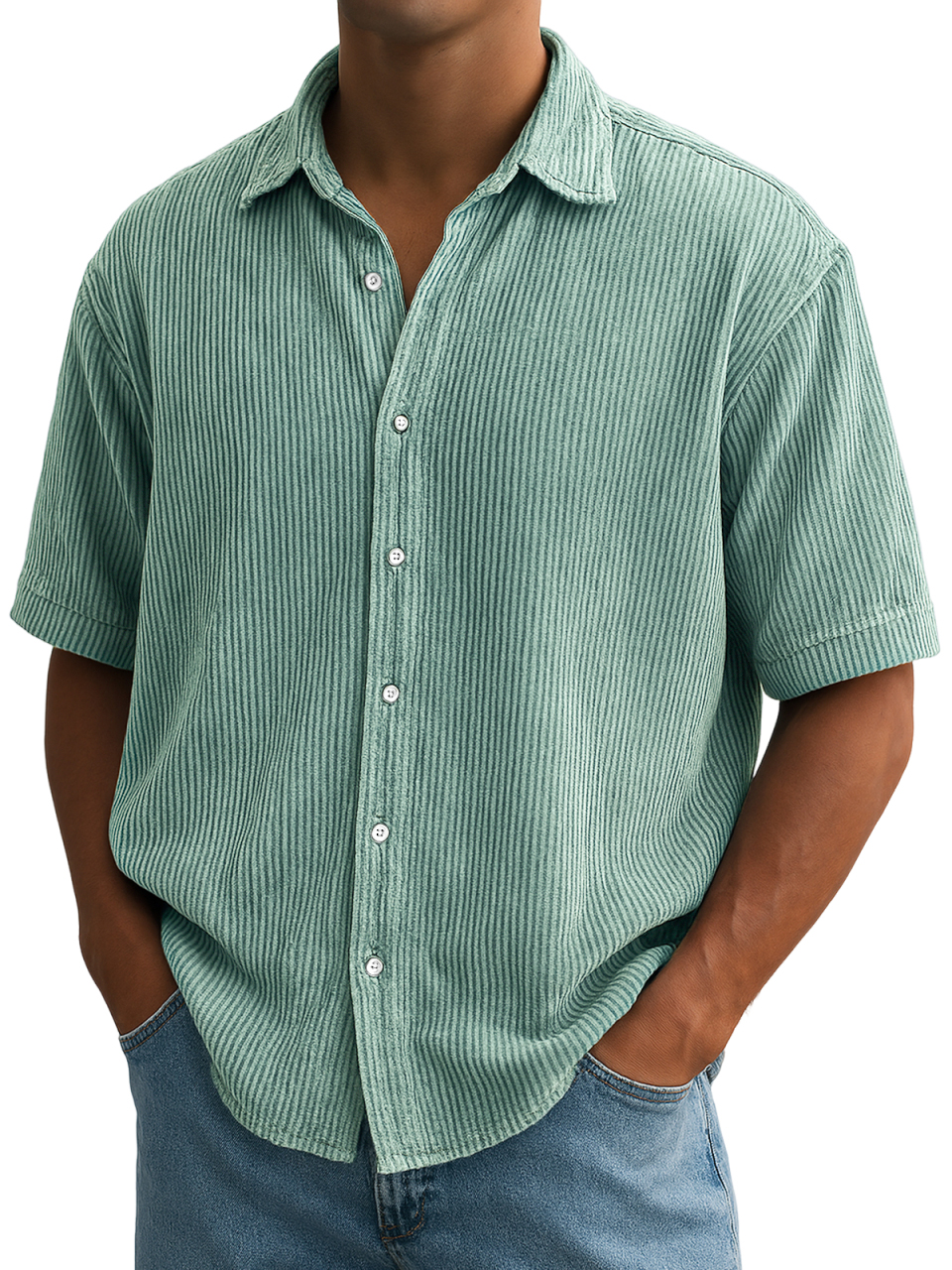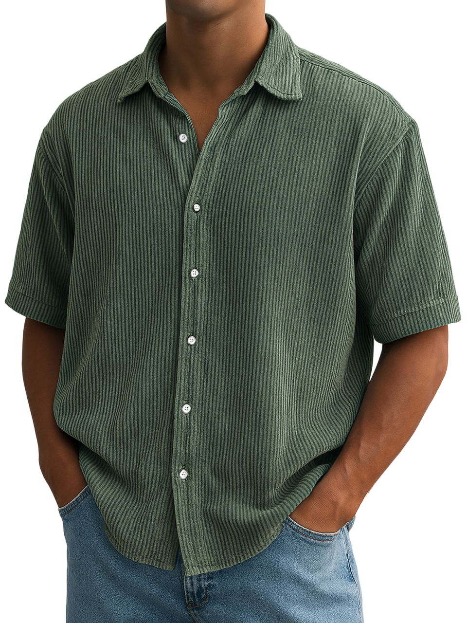 Men's Stylish Ripped Vertical Striped Corduroy Comfortable Casual Short Sleeve Shirt