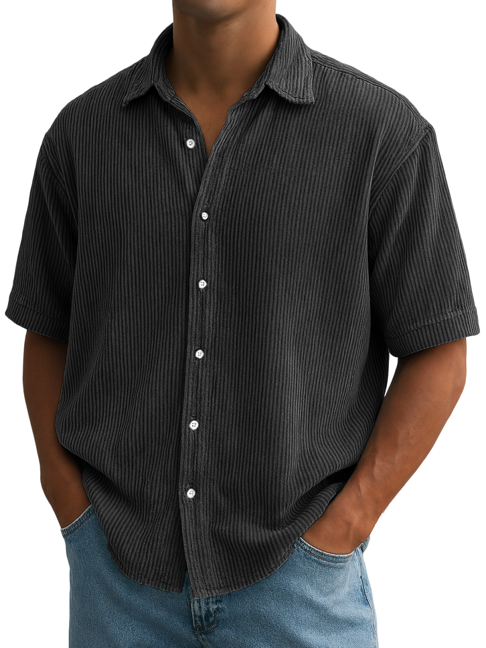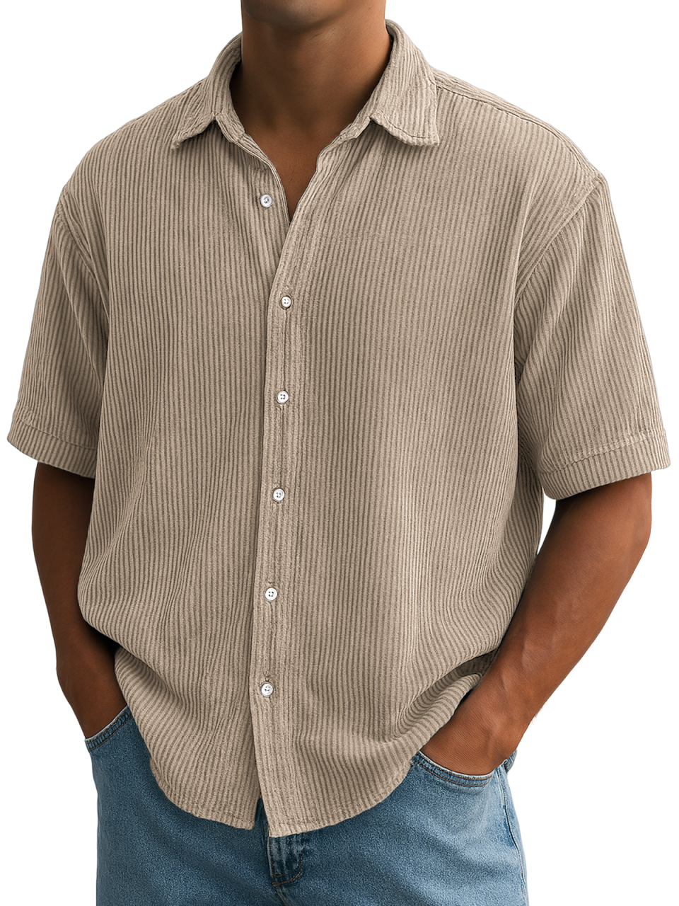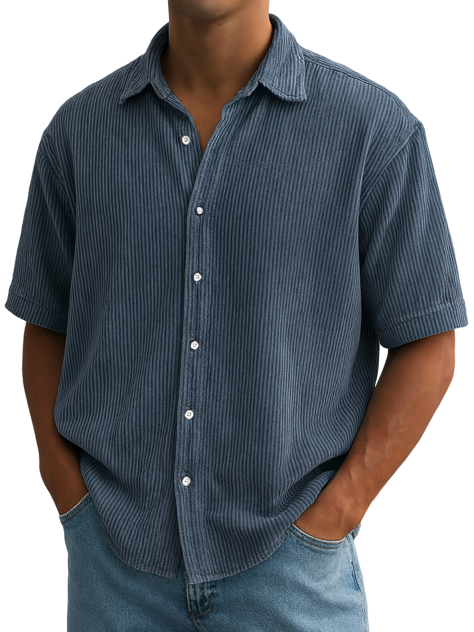 Men's Stylish Ripped Vertical Striped Corduroy Comfortable Casual Short Sleeve Shirt