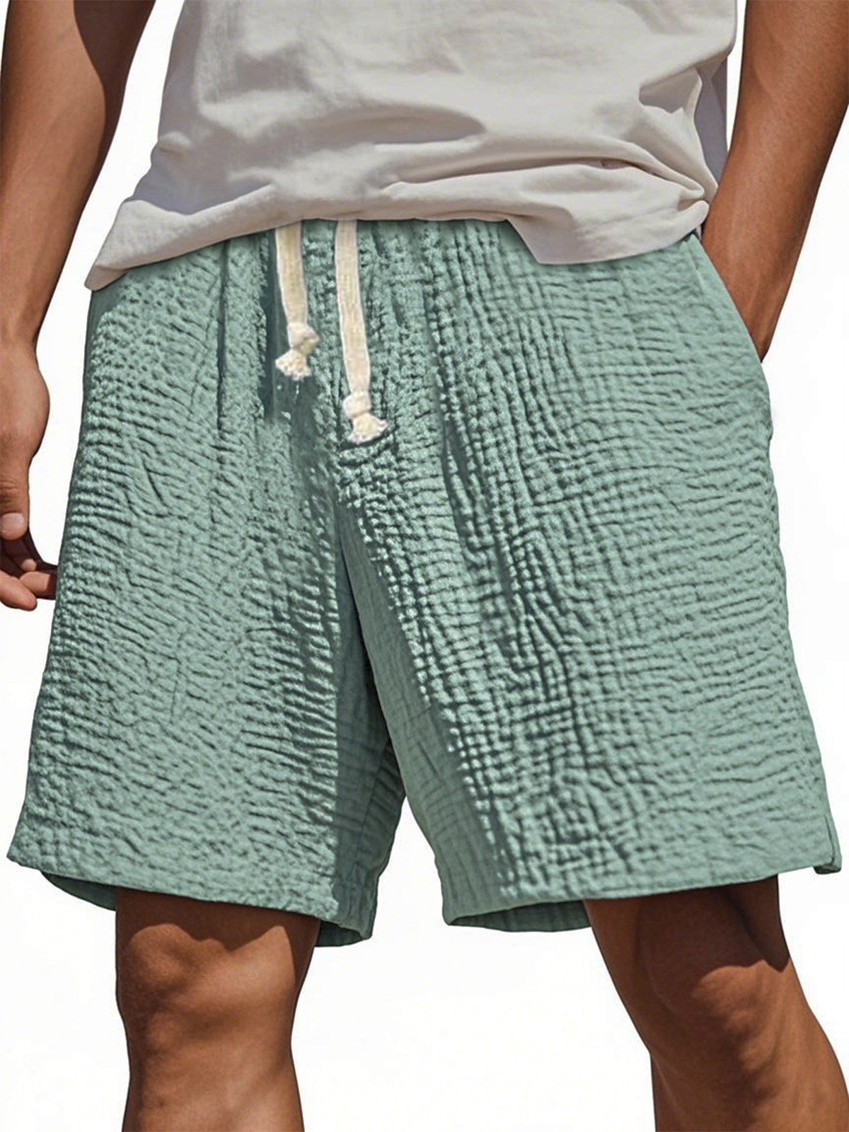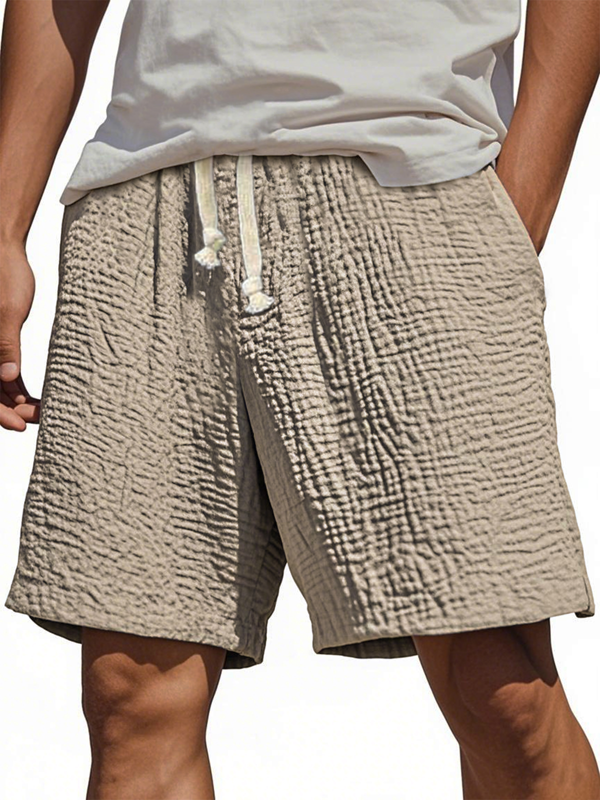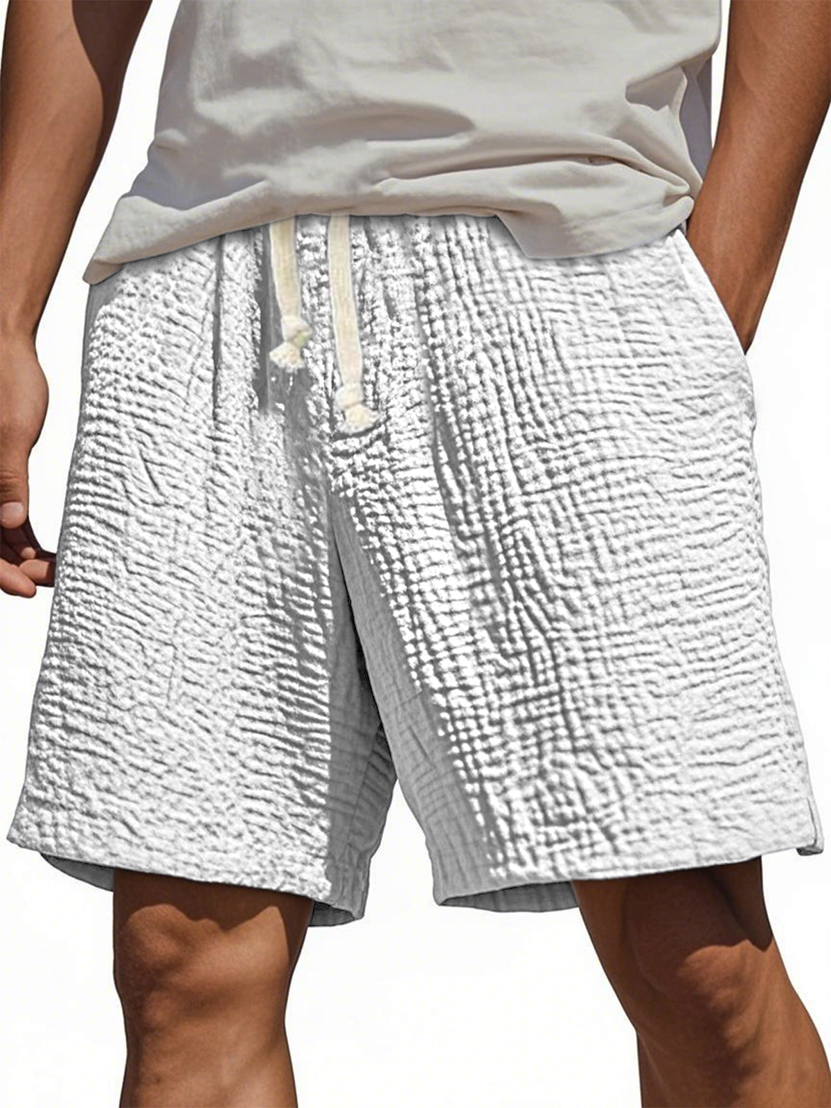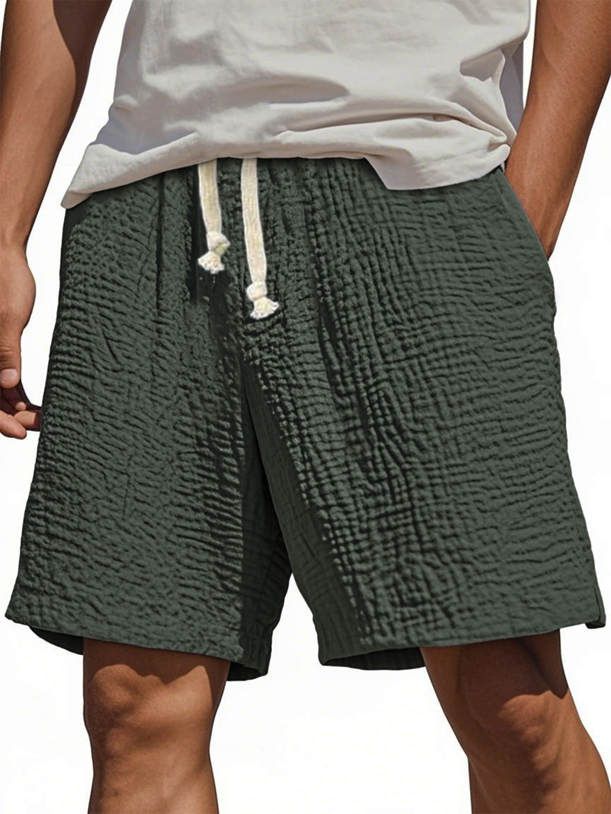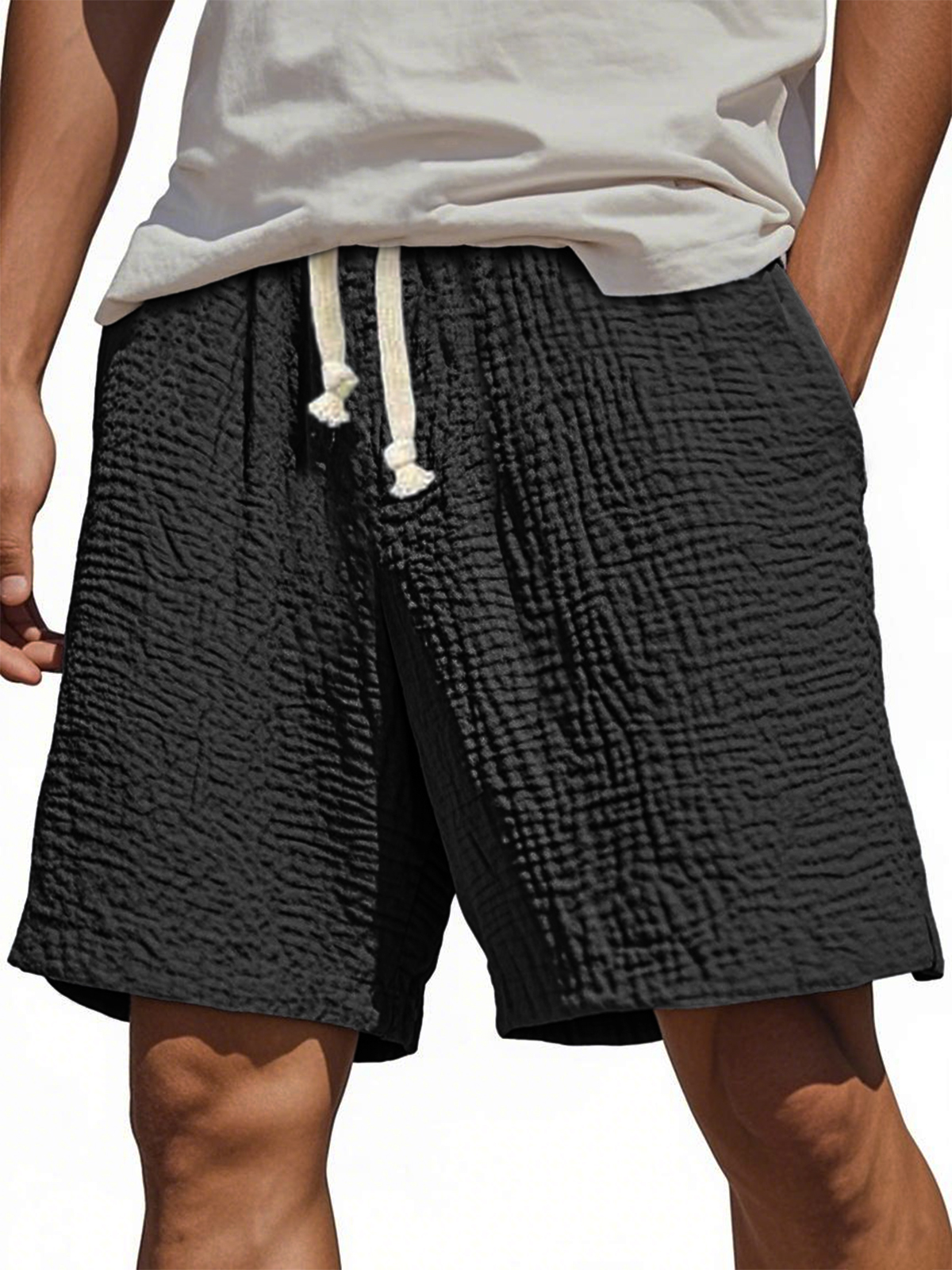 Men's Stylish Wrinkled Textured Lace-up Casual Shorts
