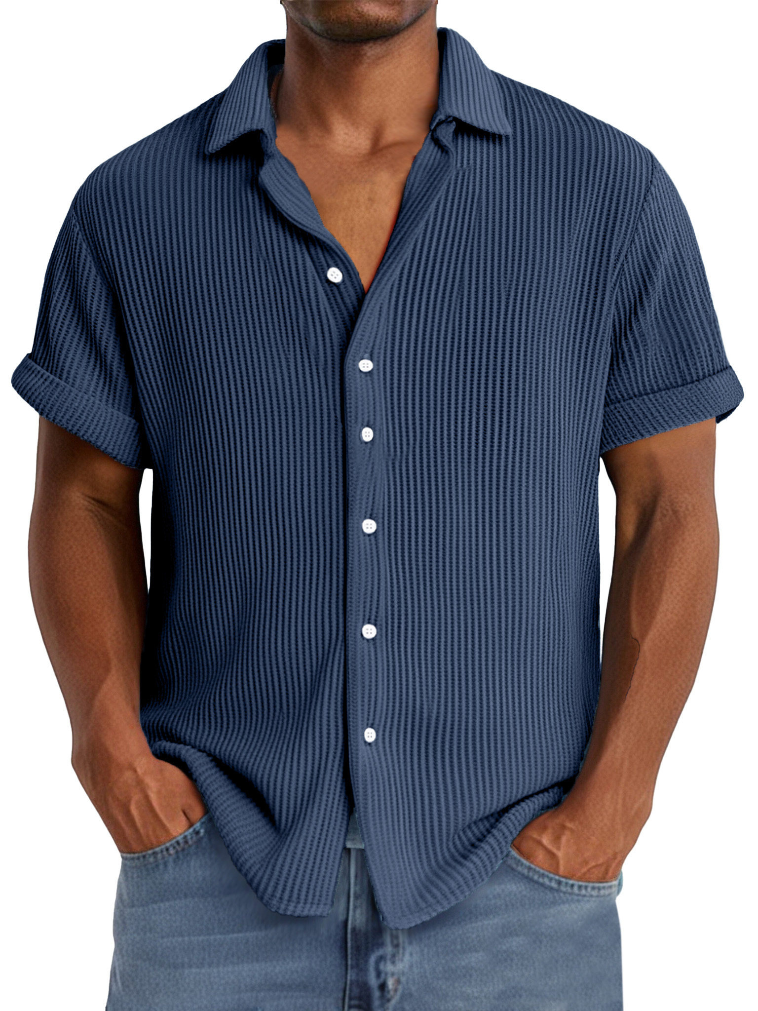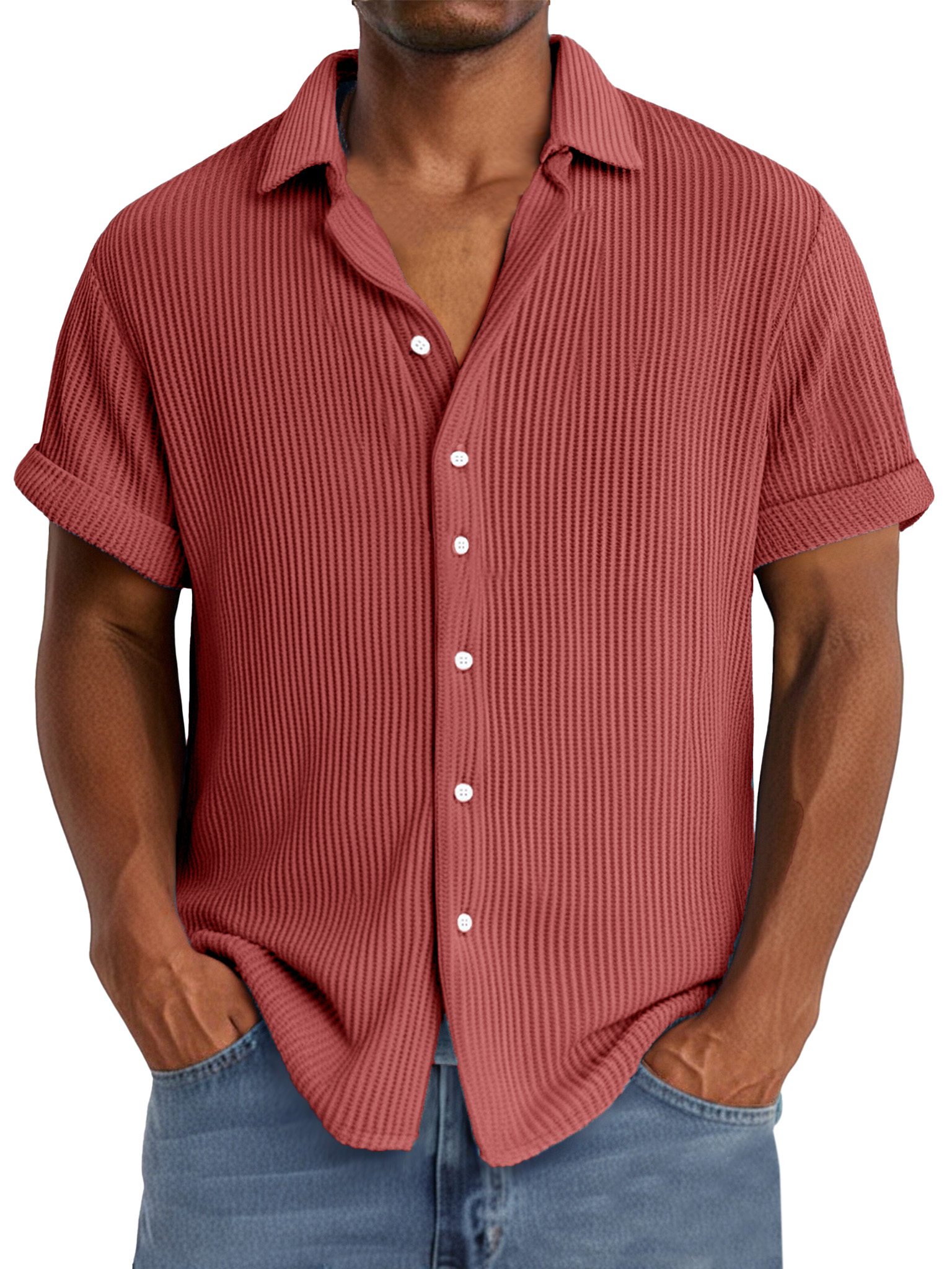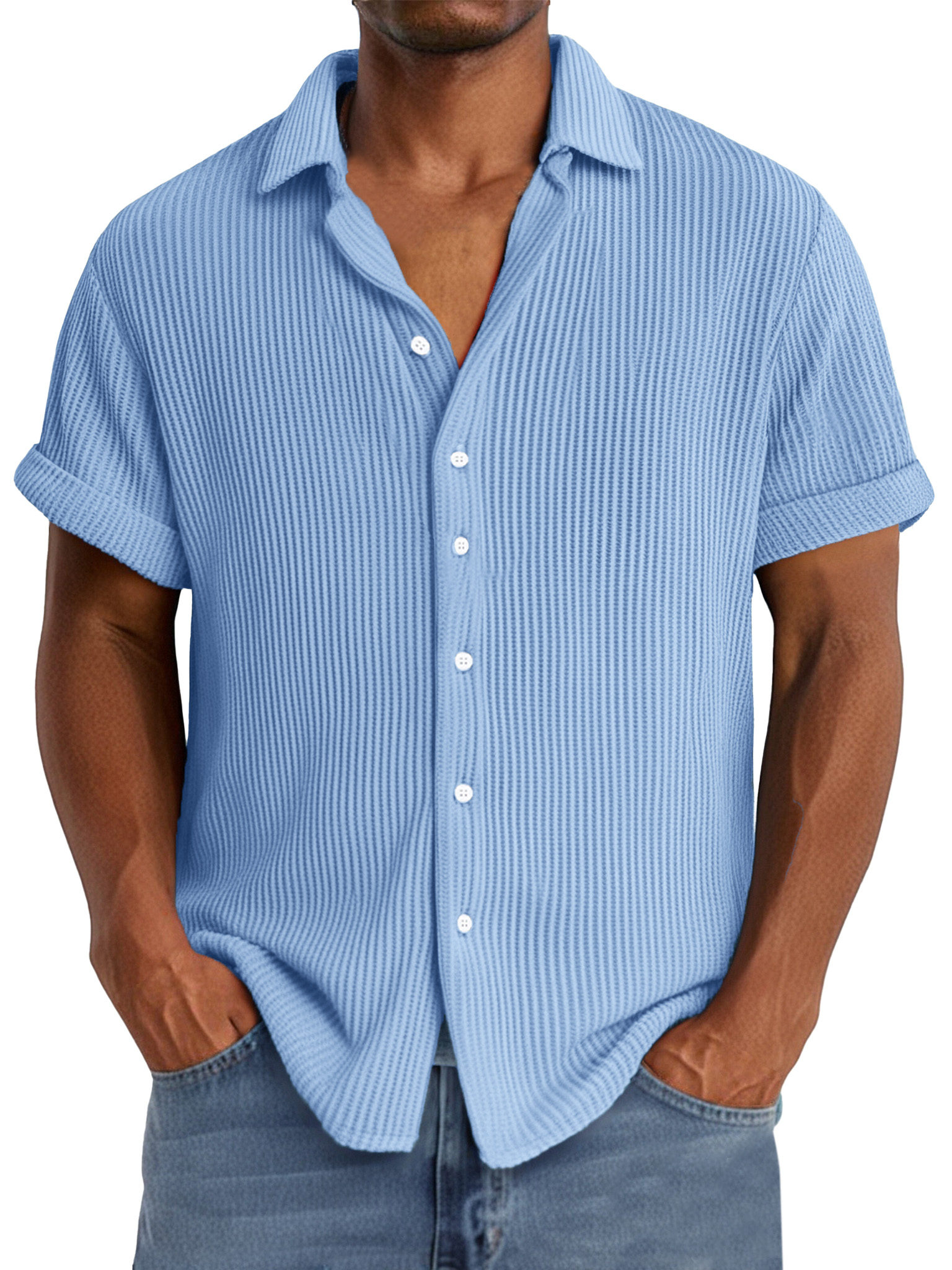 • Men's summer casual simple waffle texture short-sleeved shirt