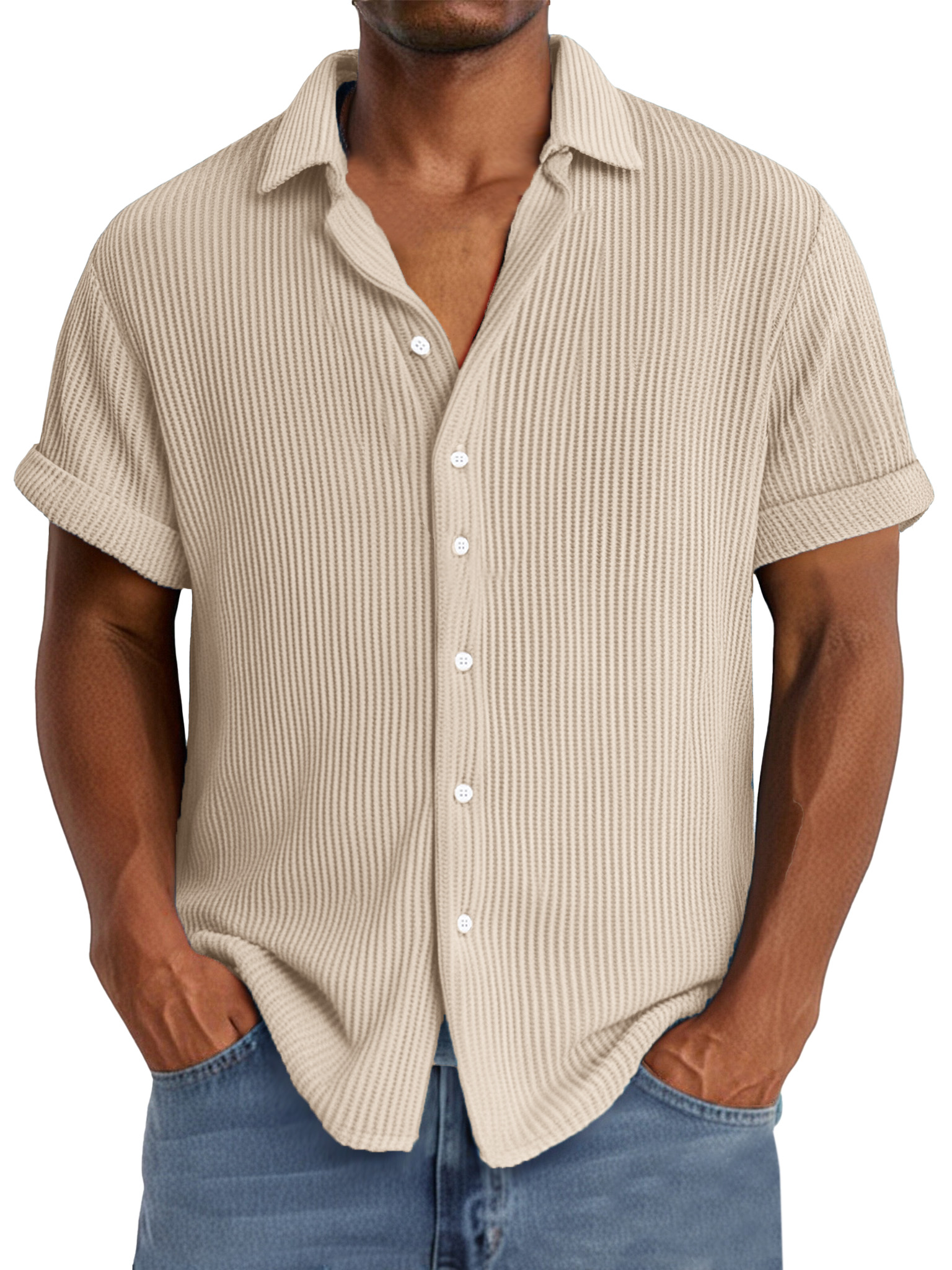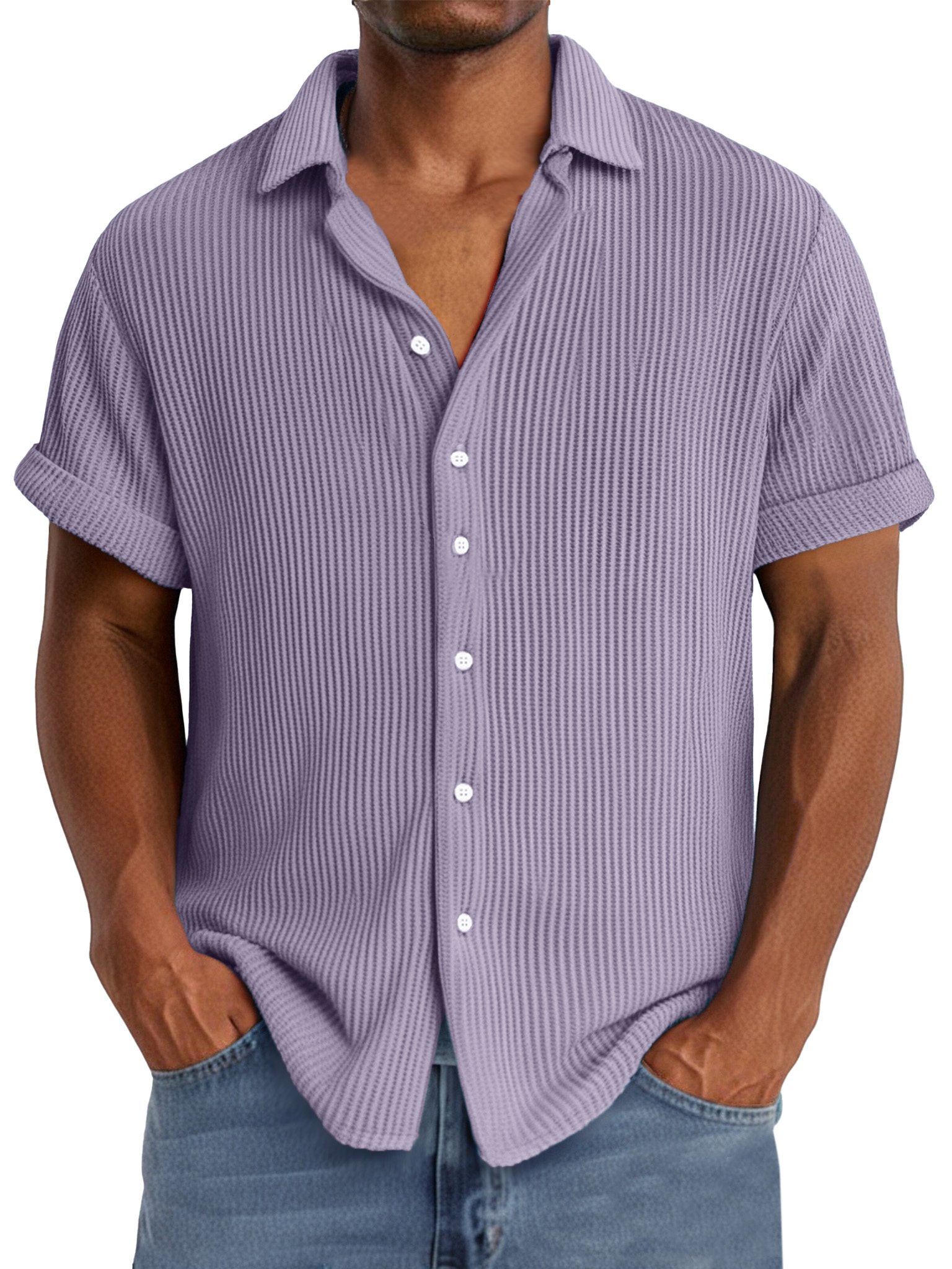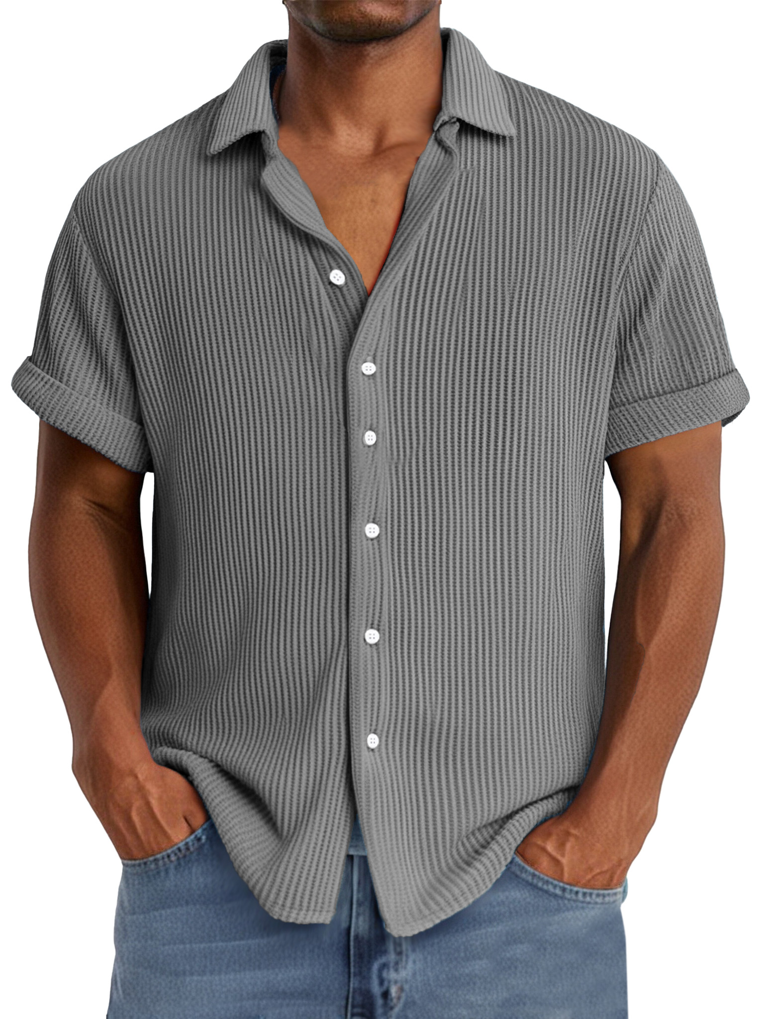 • Men's summer casual simple waffle texture short-sleeved shirt