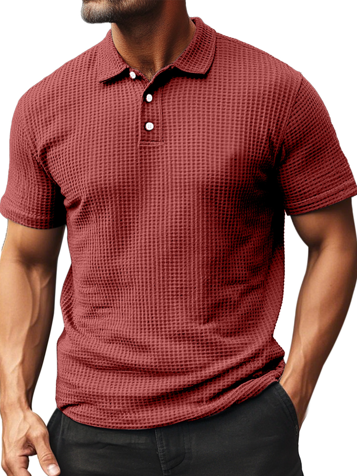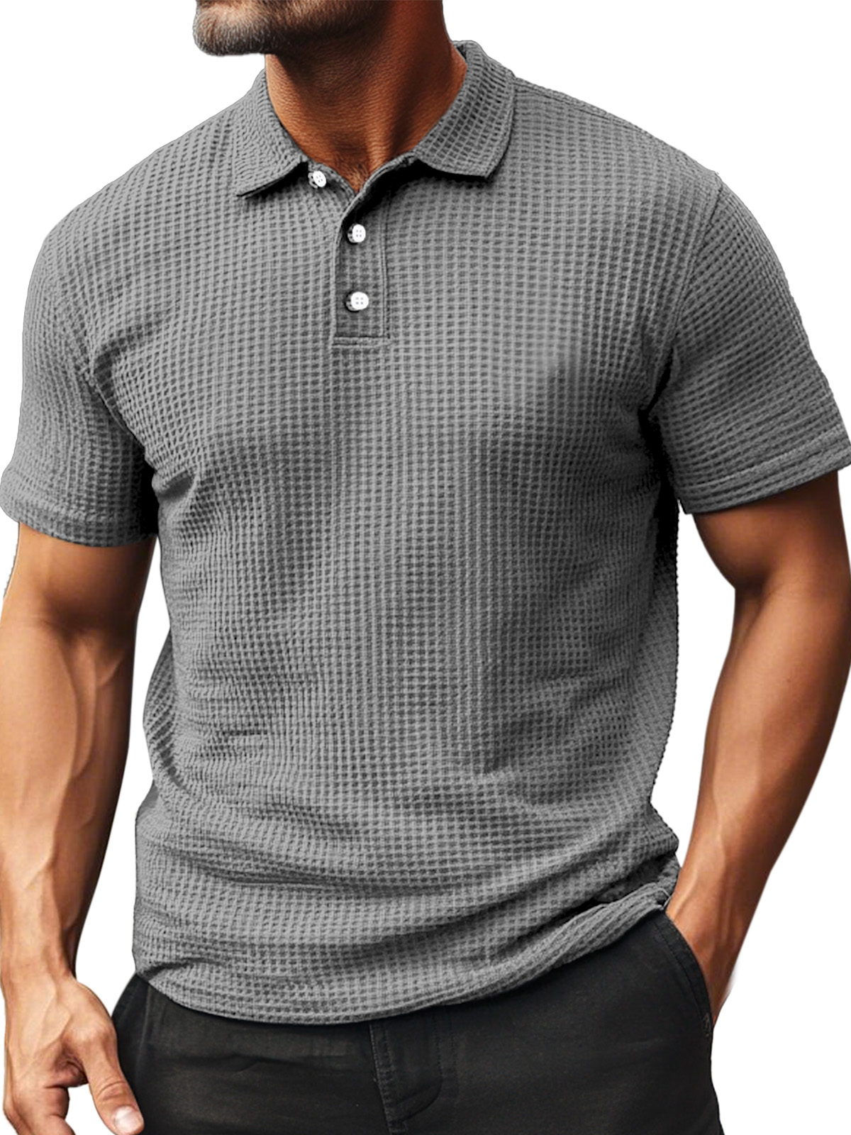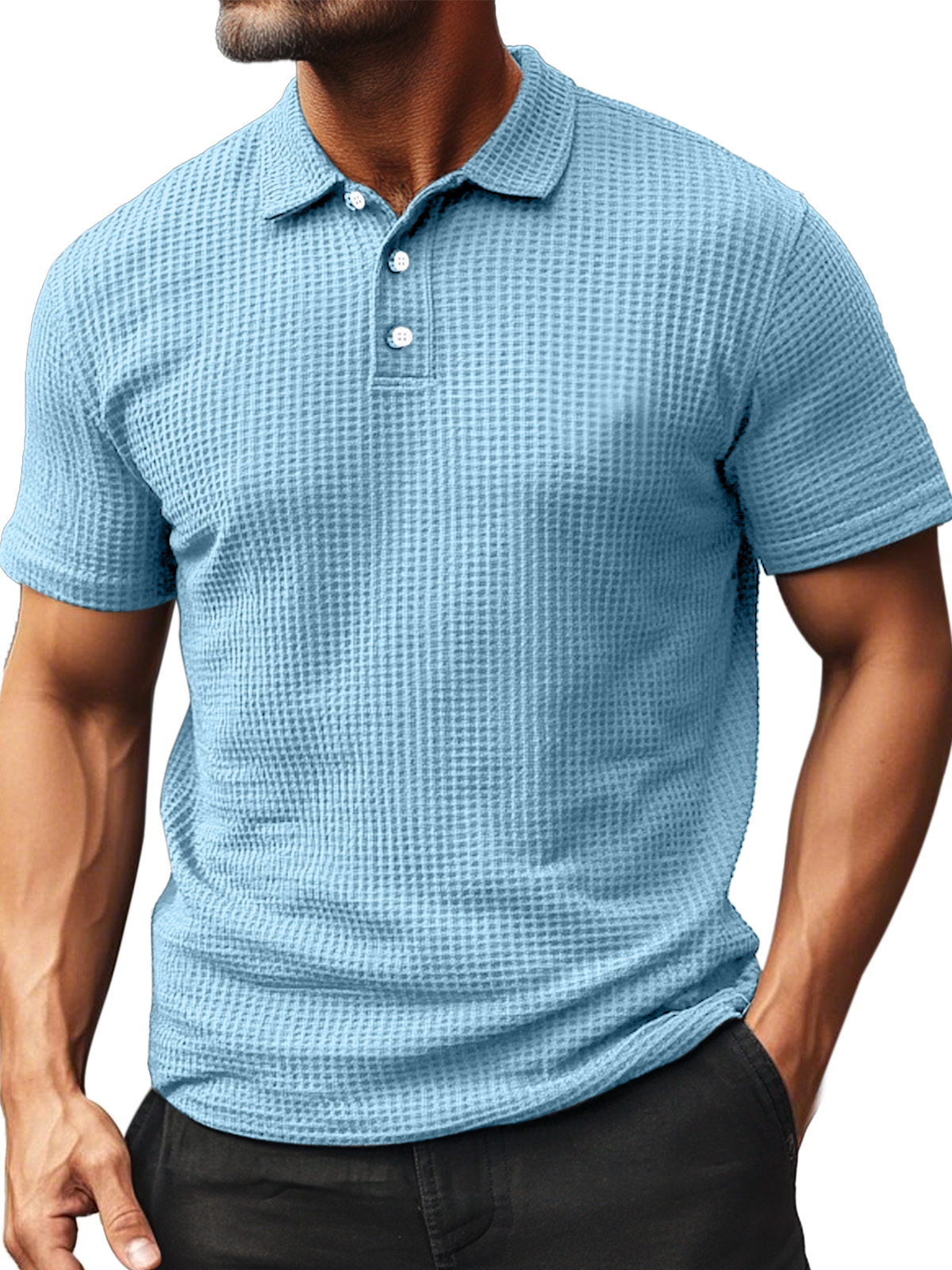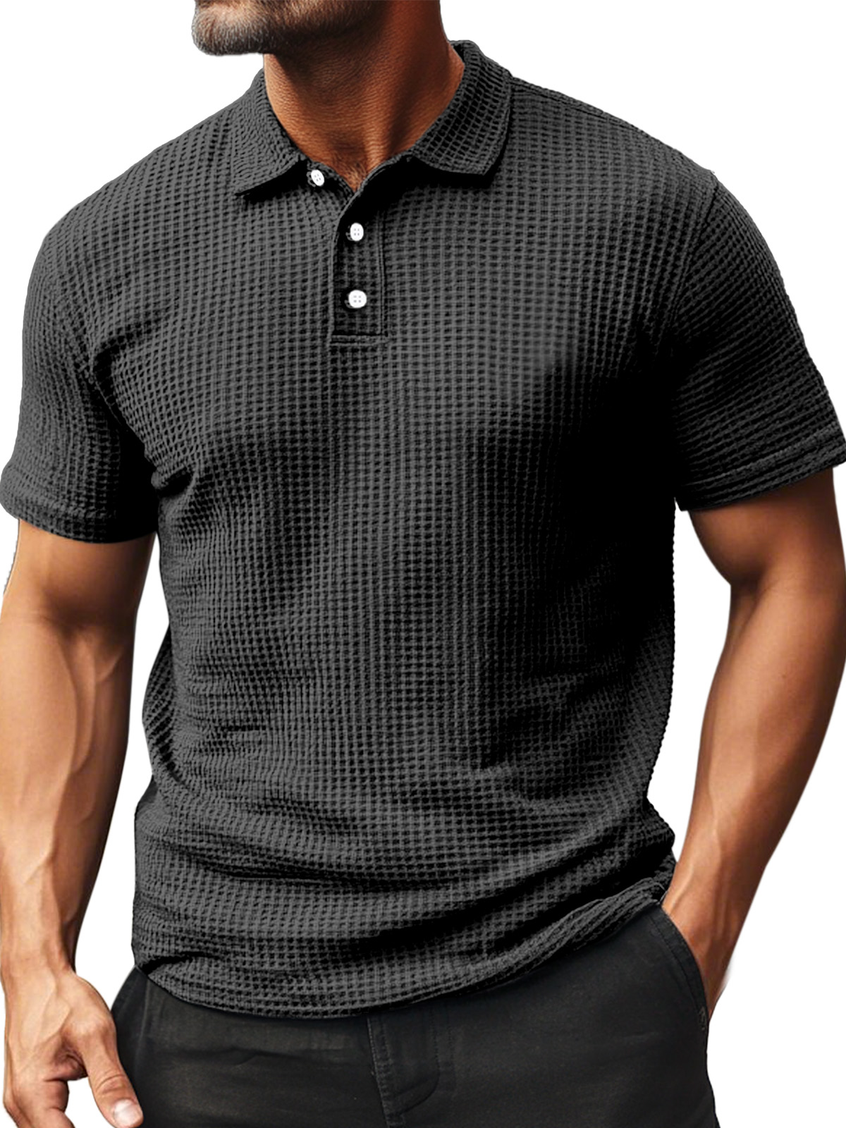 • Men's Summer Daily Waffle Texture Short Sleeve Button-up Polo Shirt