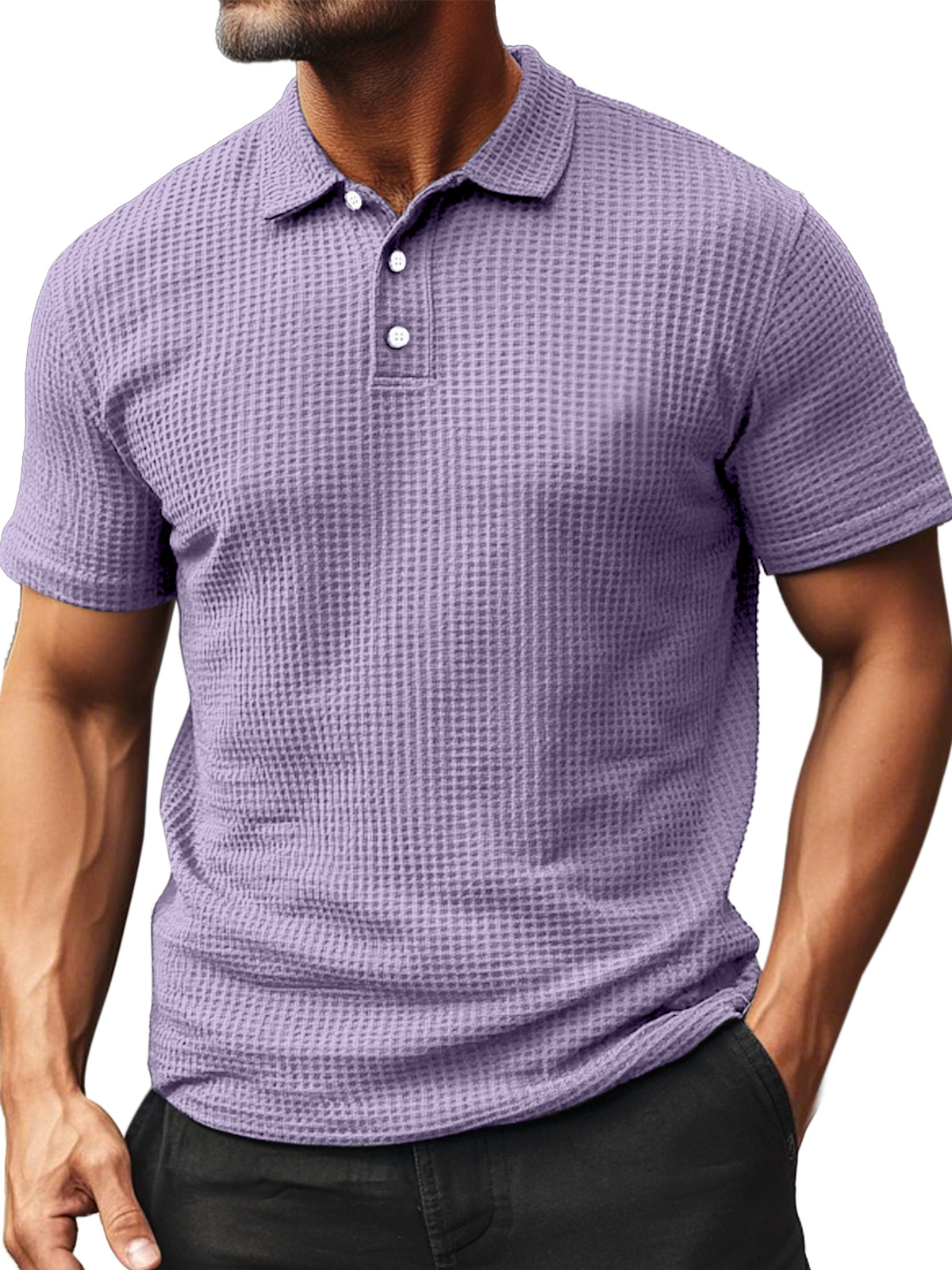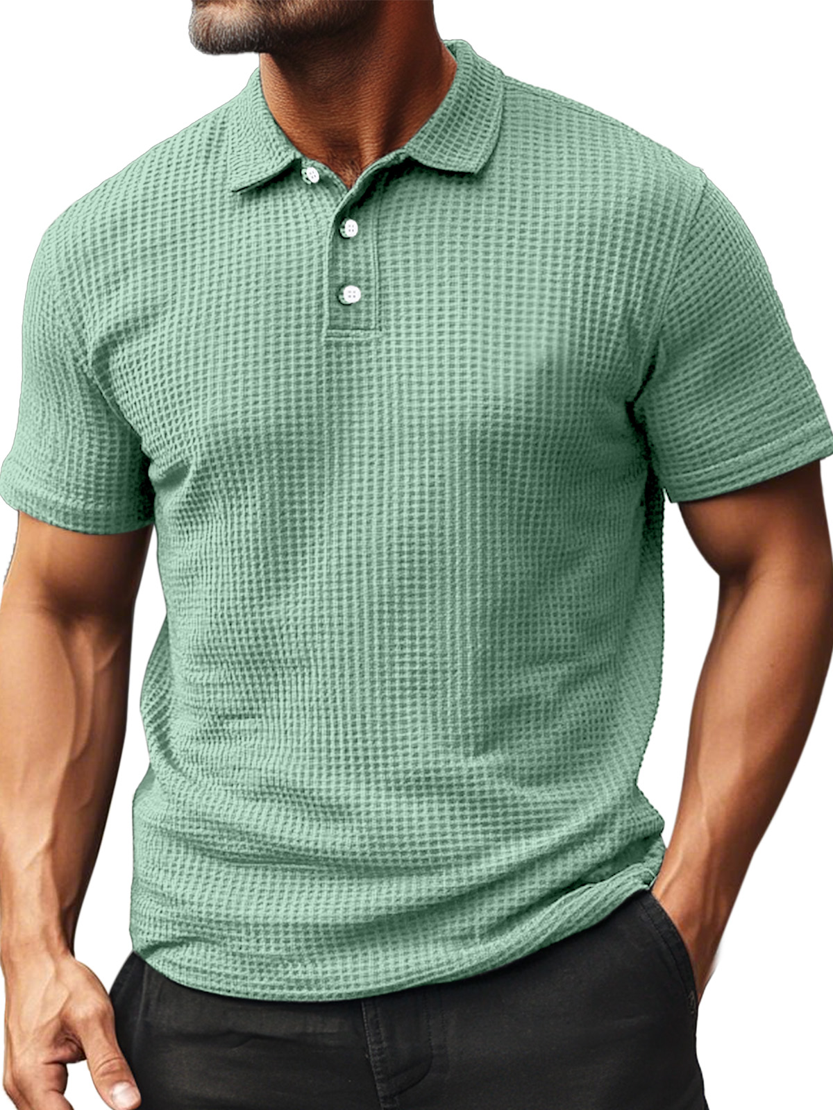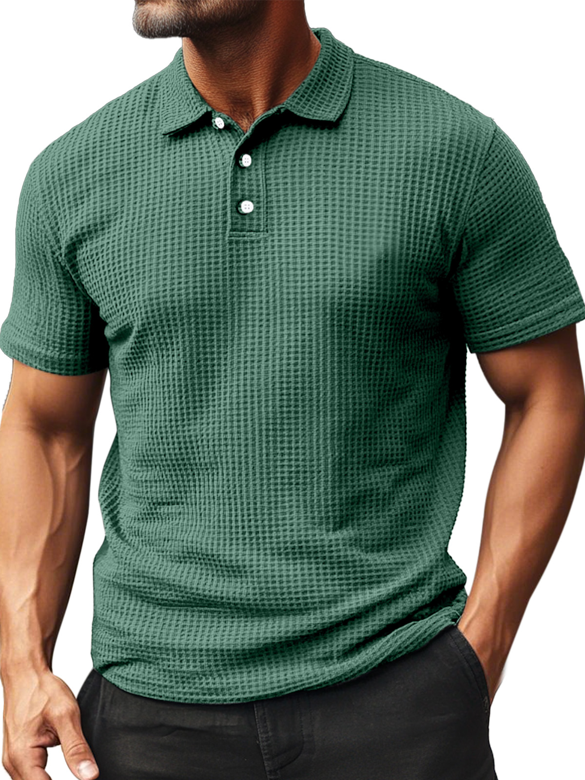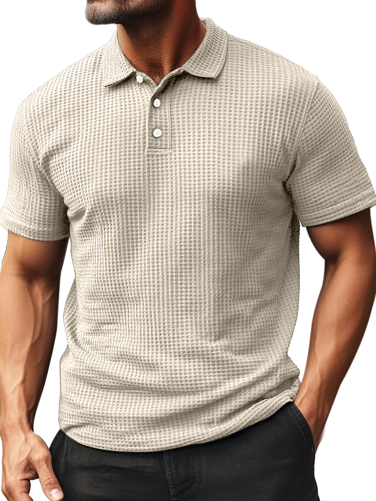 • Men's Summer Daily Waffle Texture Short Sleeve Button-up Polo Shirt