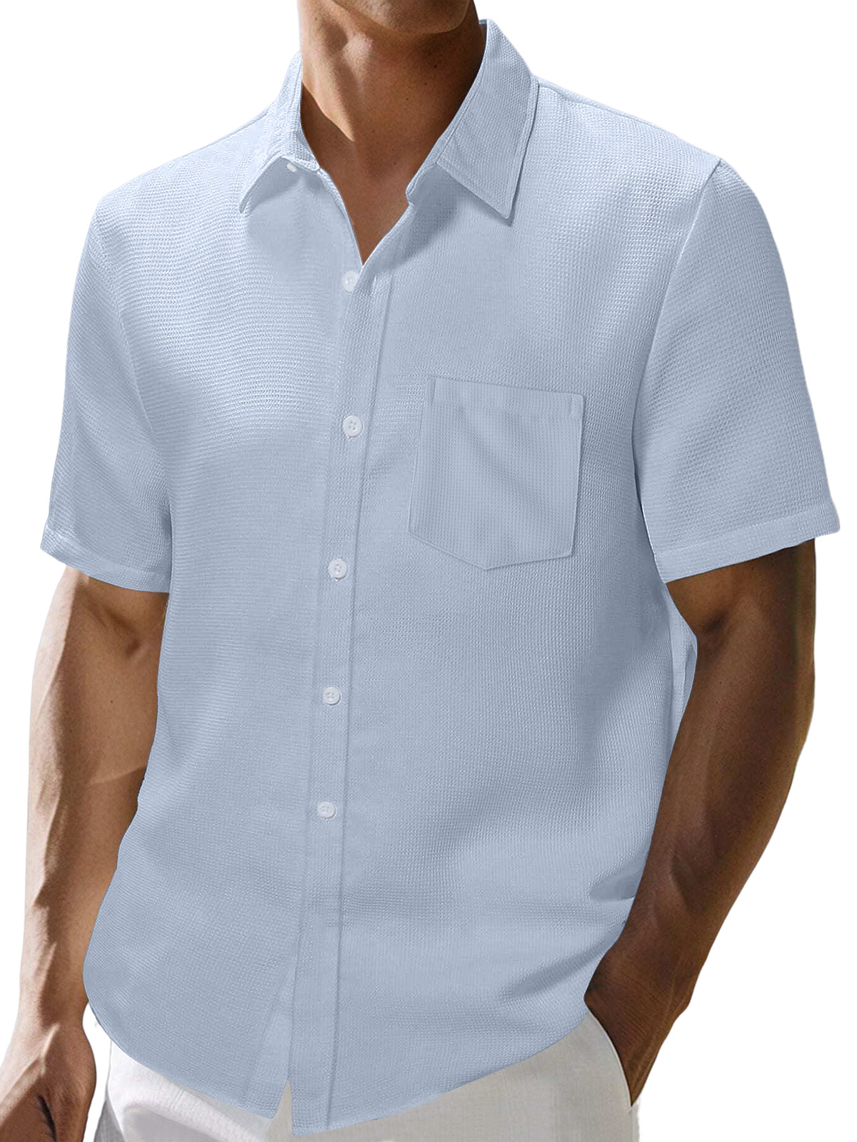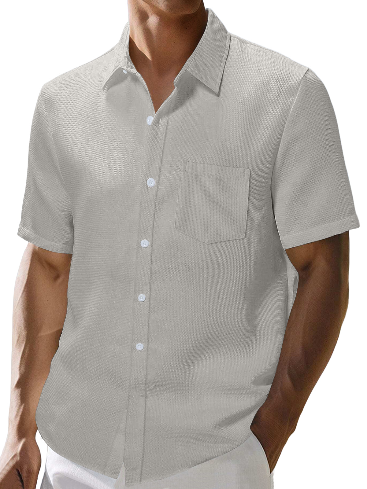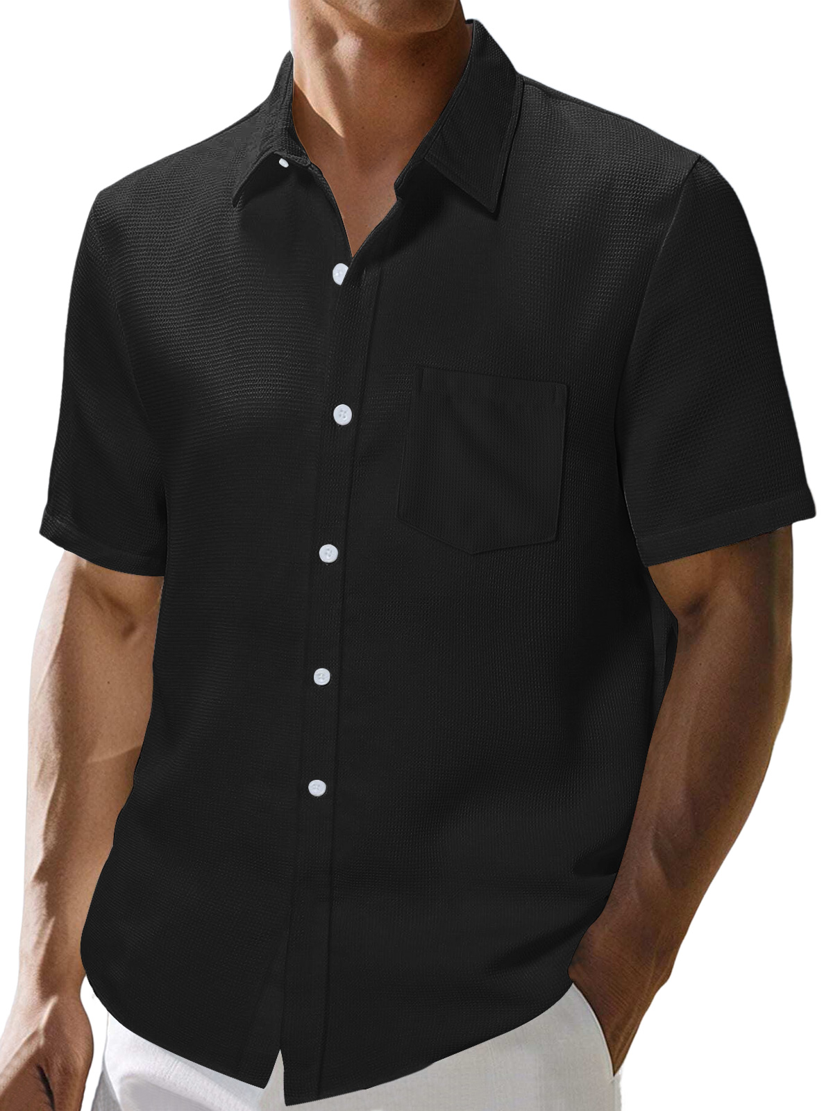 Men's Summer Waffle Solid Pocket Casual Short Sleeve Shirt