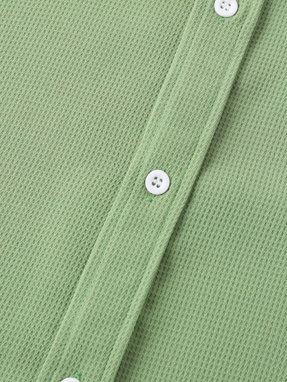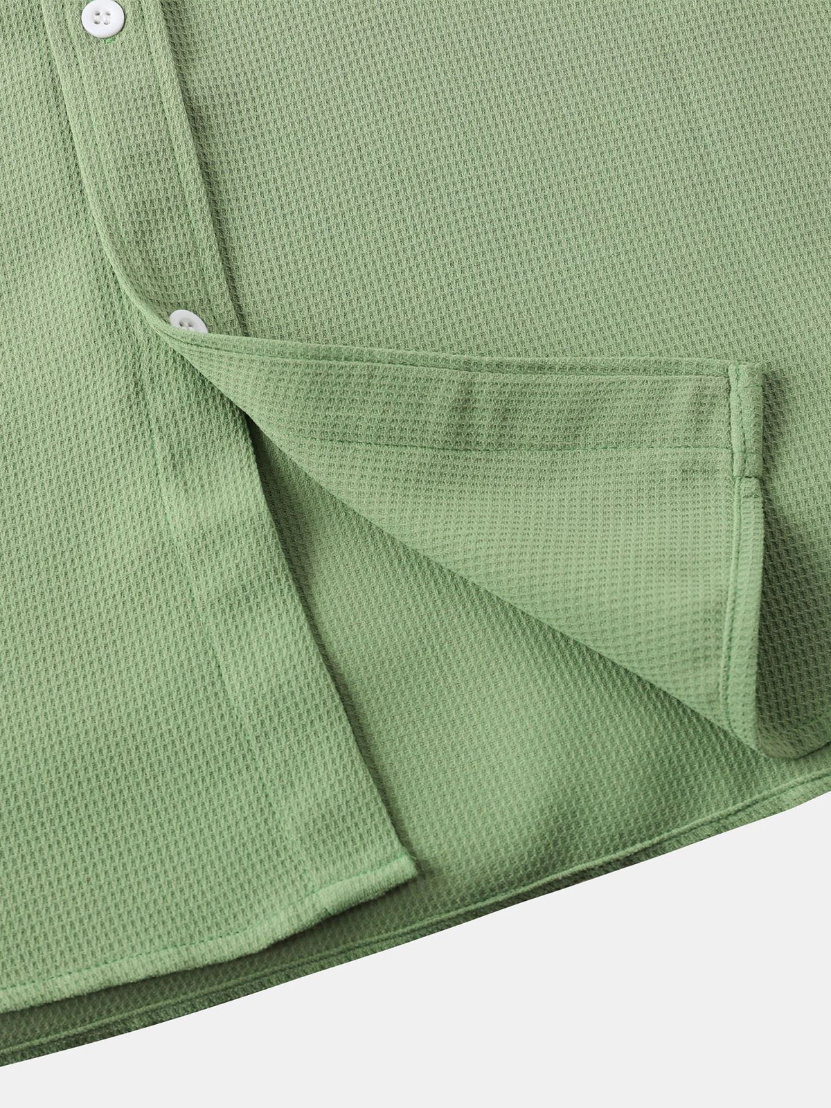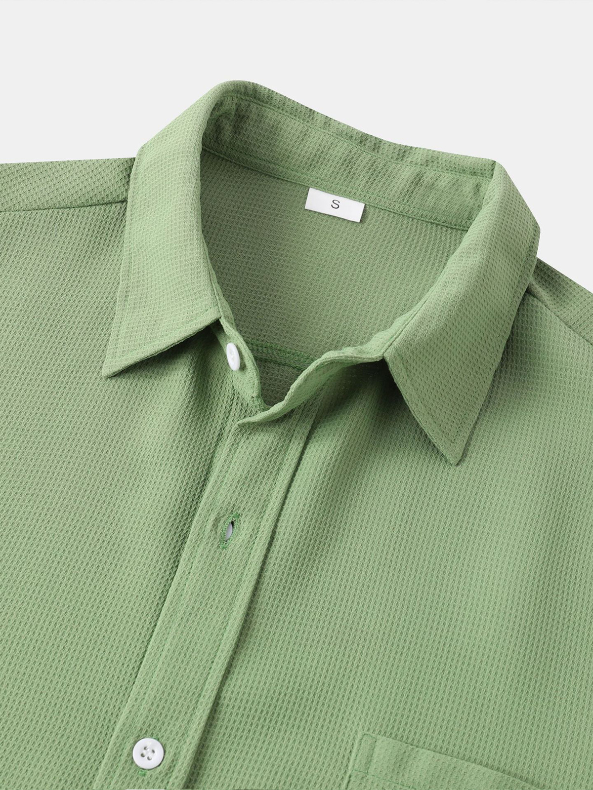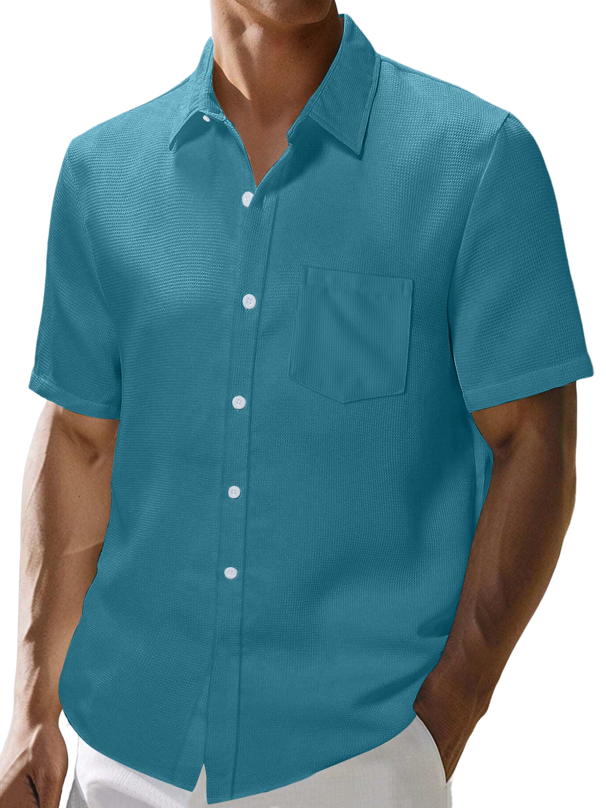 Men's Summer Waffle Solid Pocket Casual Short Sleeve Shirt