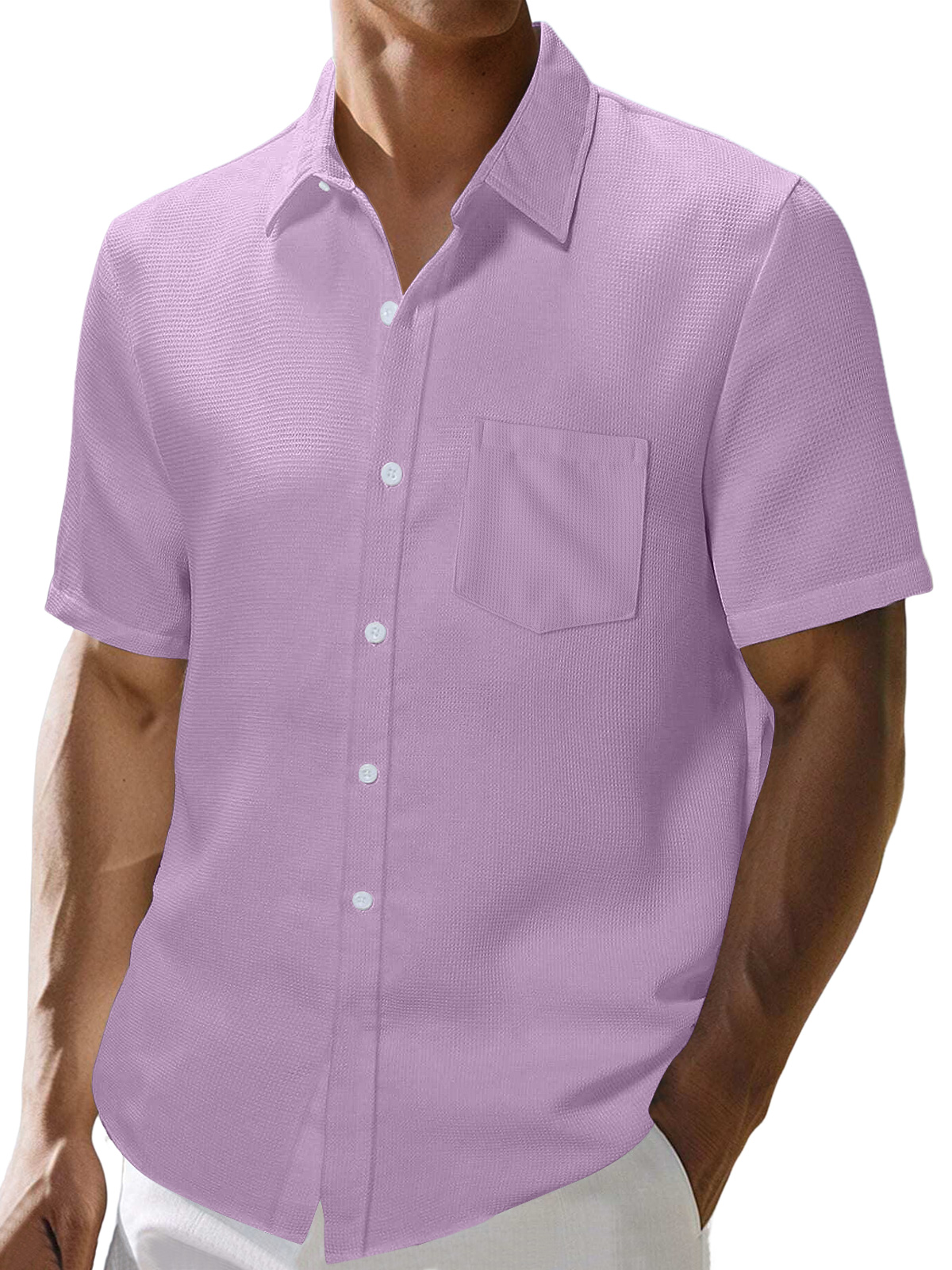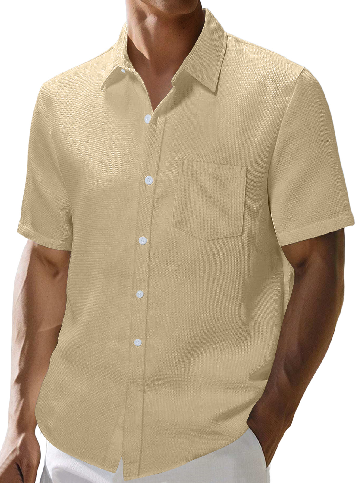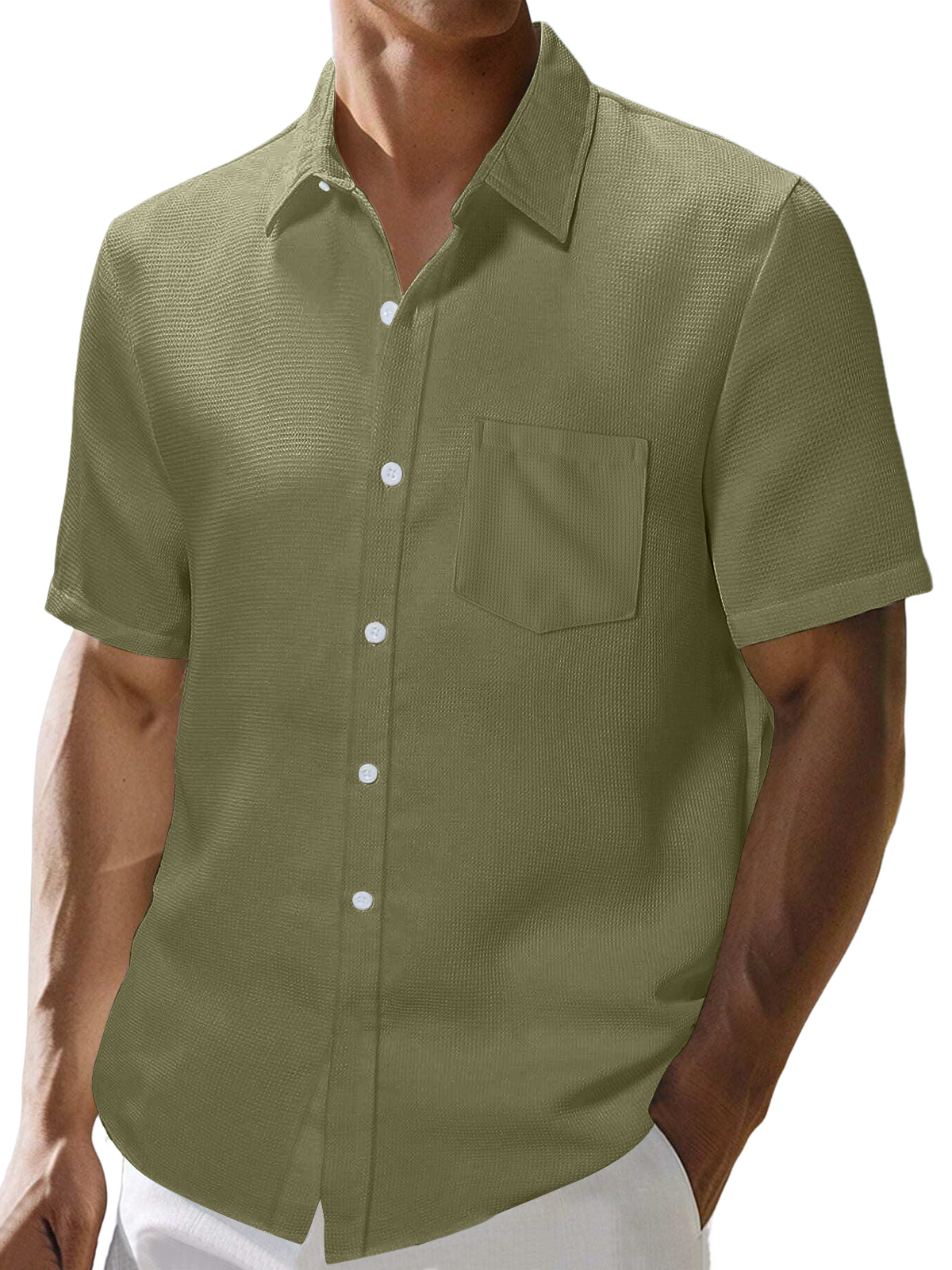 • Men's Summer Waffle Solid Pocket Casual Short Sleeve Shirt