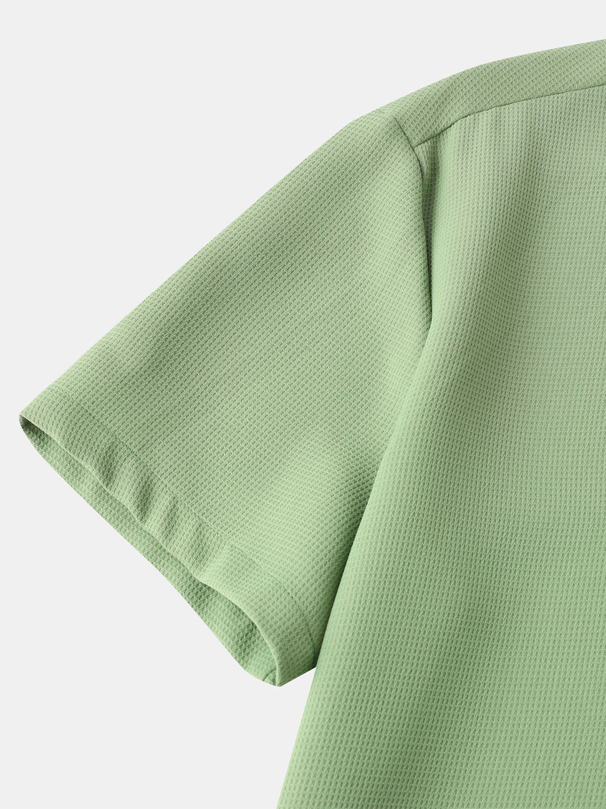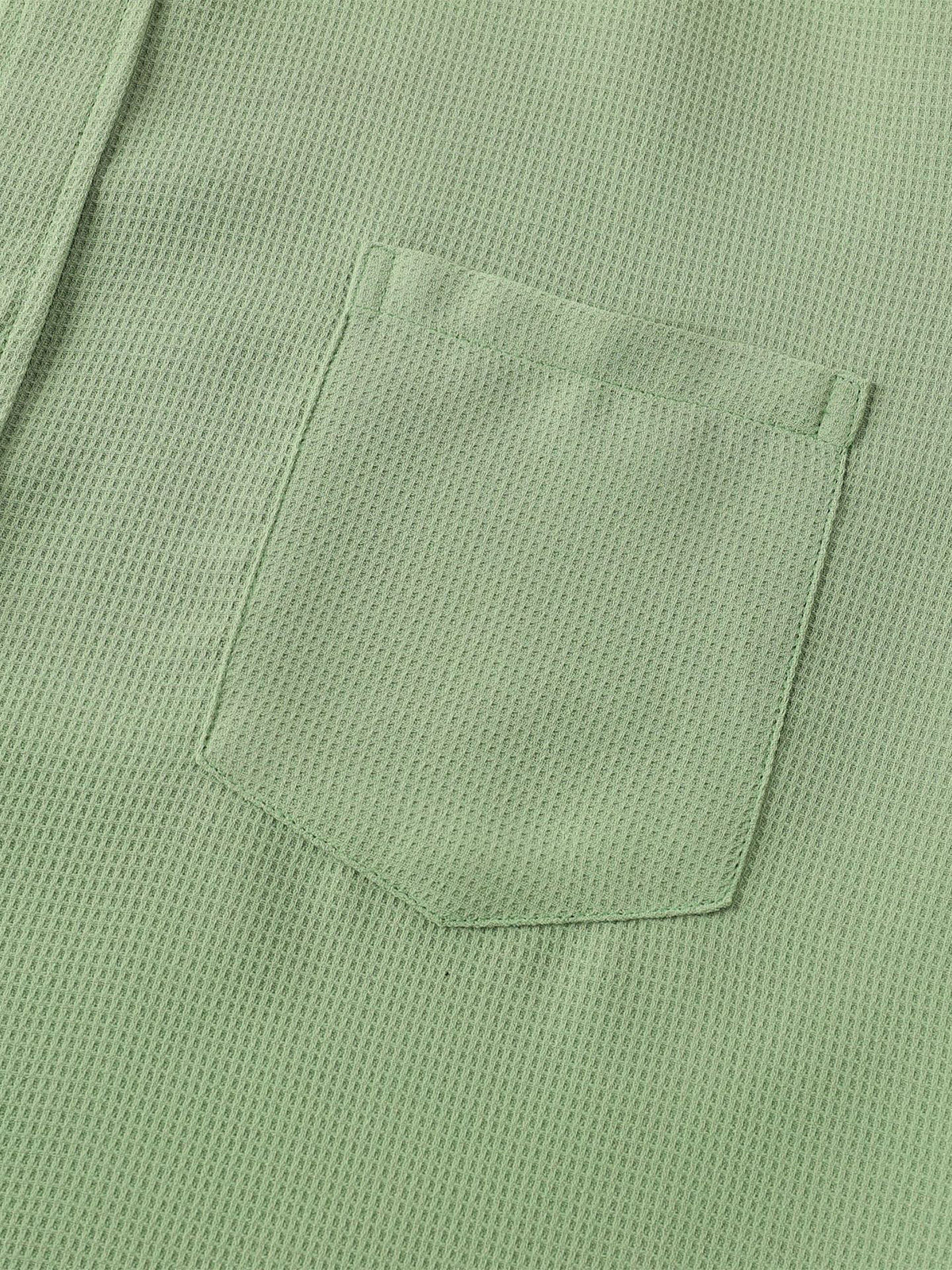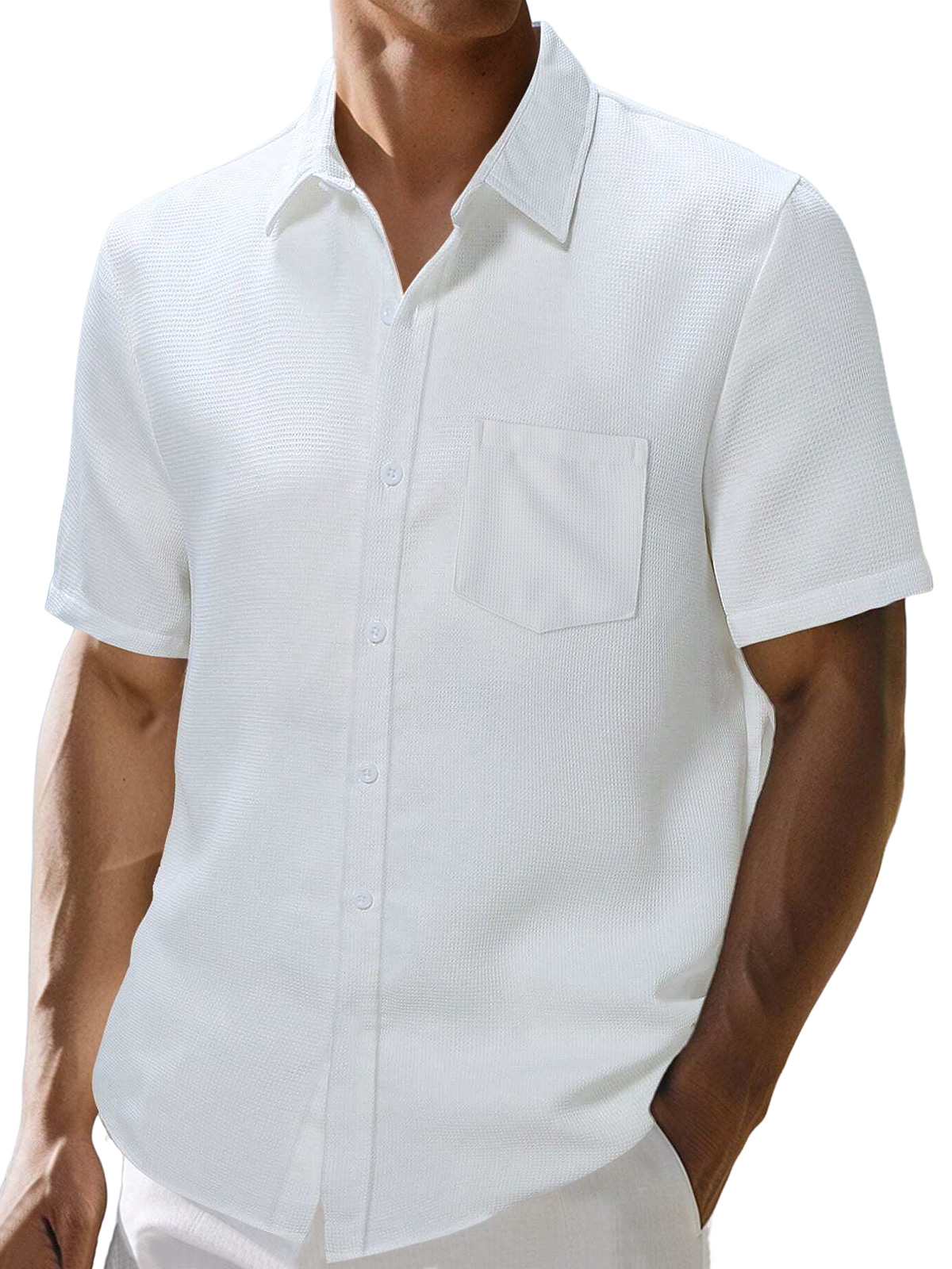 • Men's Summer Waffle Solid Pocket Casual Short Sleeve Shirt