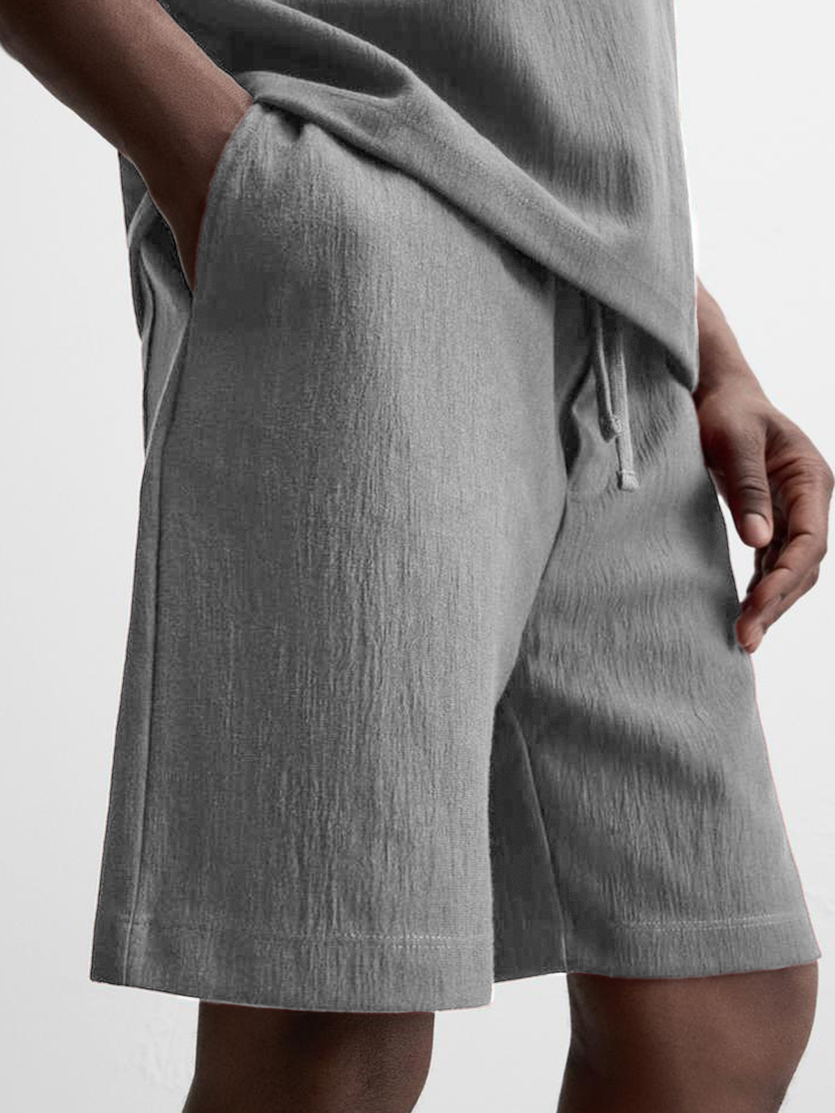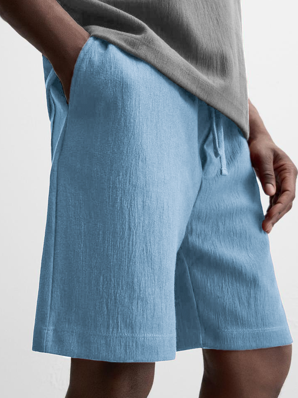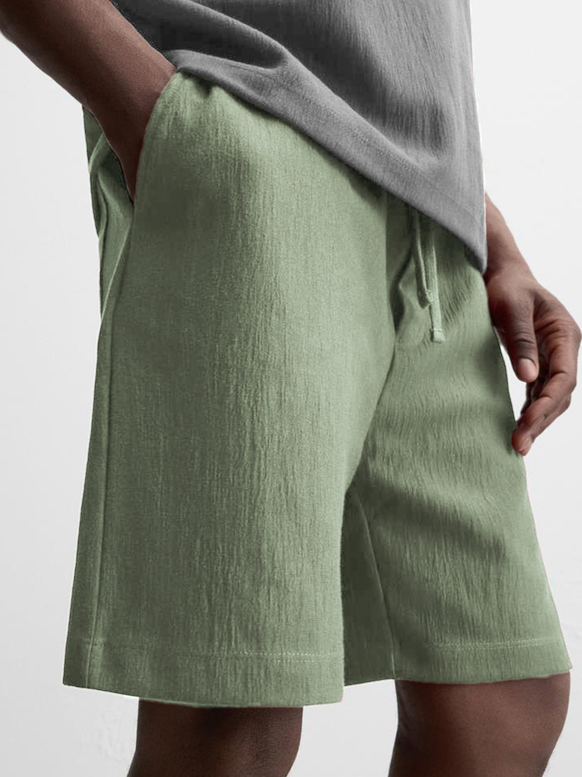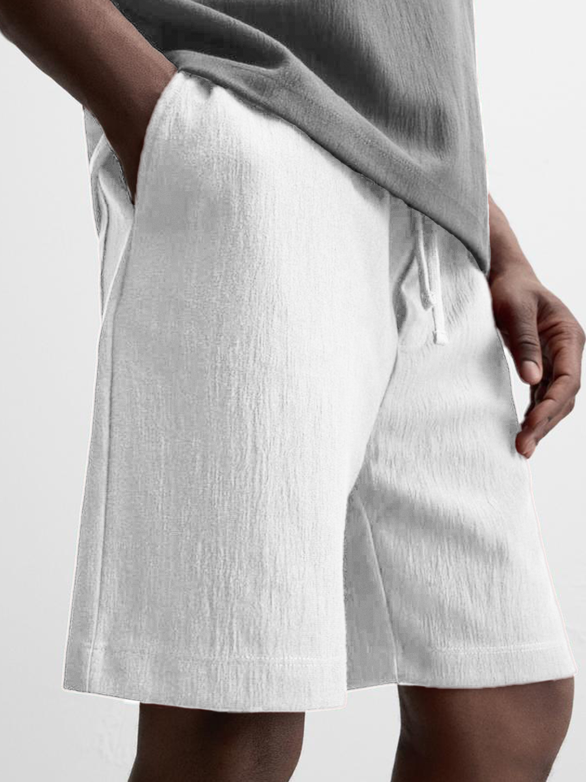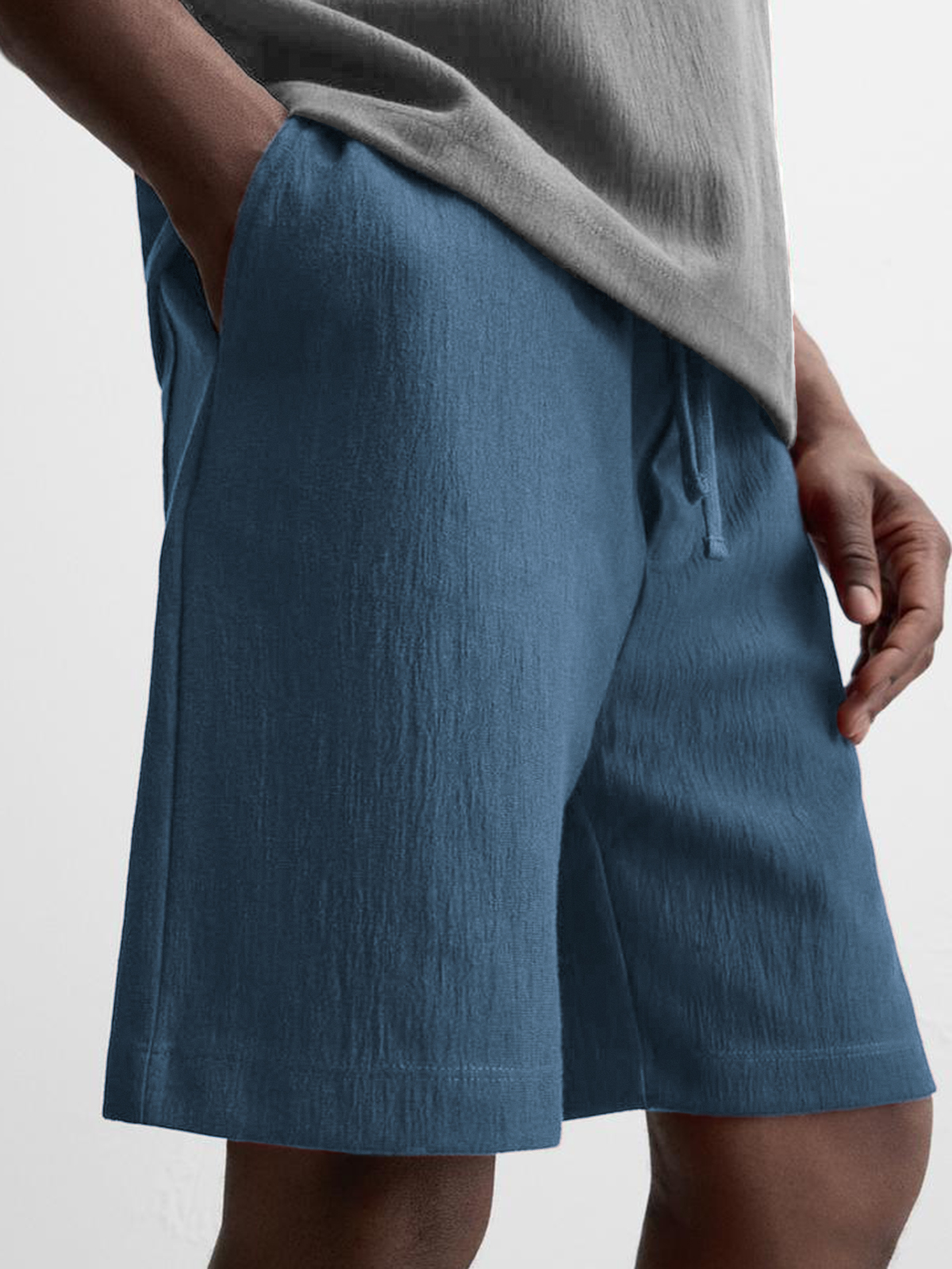 Men's Texture Crinkled Daily Casual Shorts Drawstring Elastic Waist Shorts