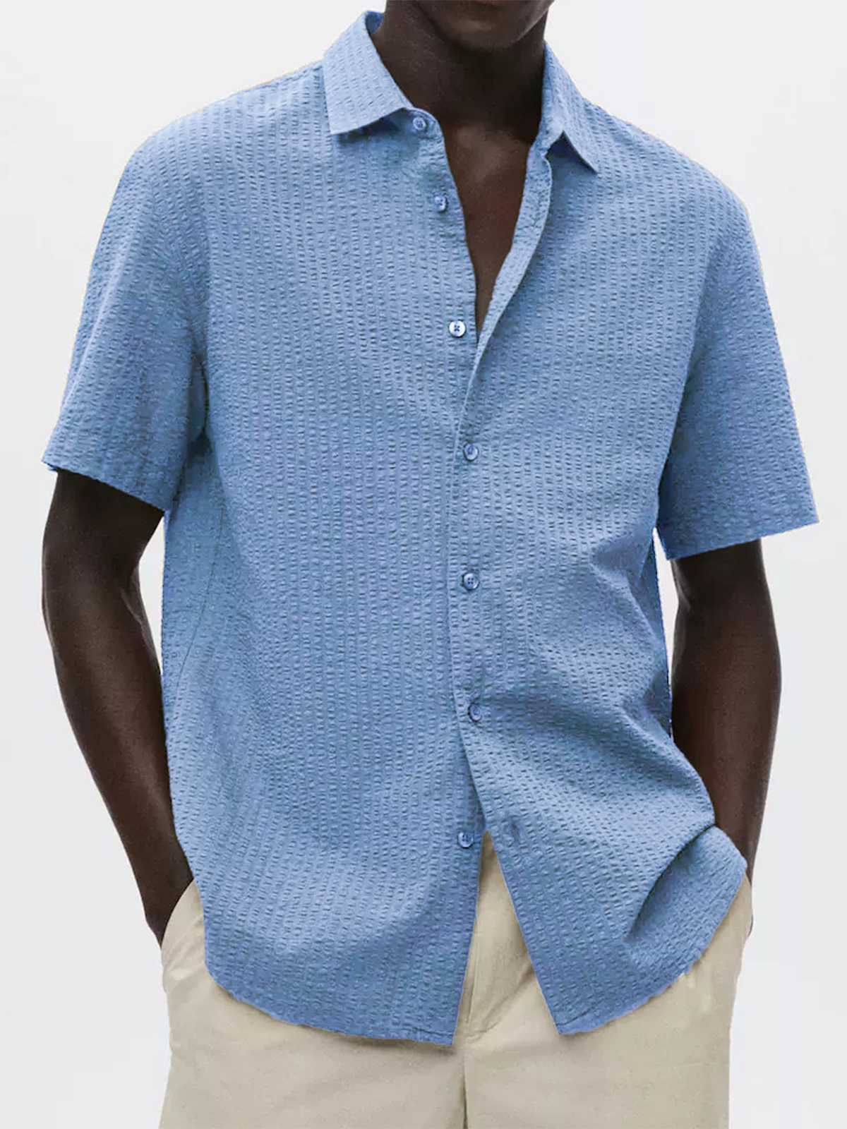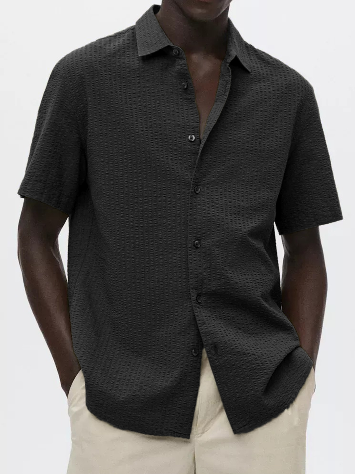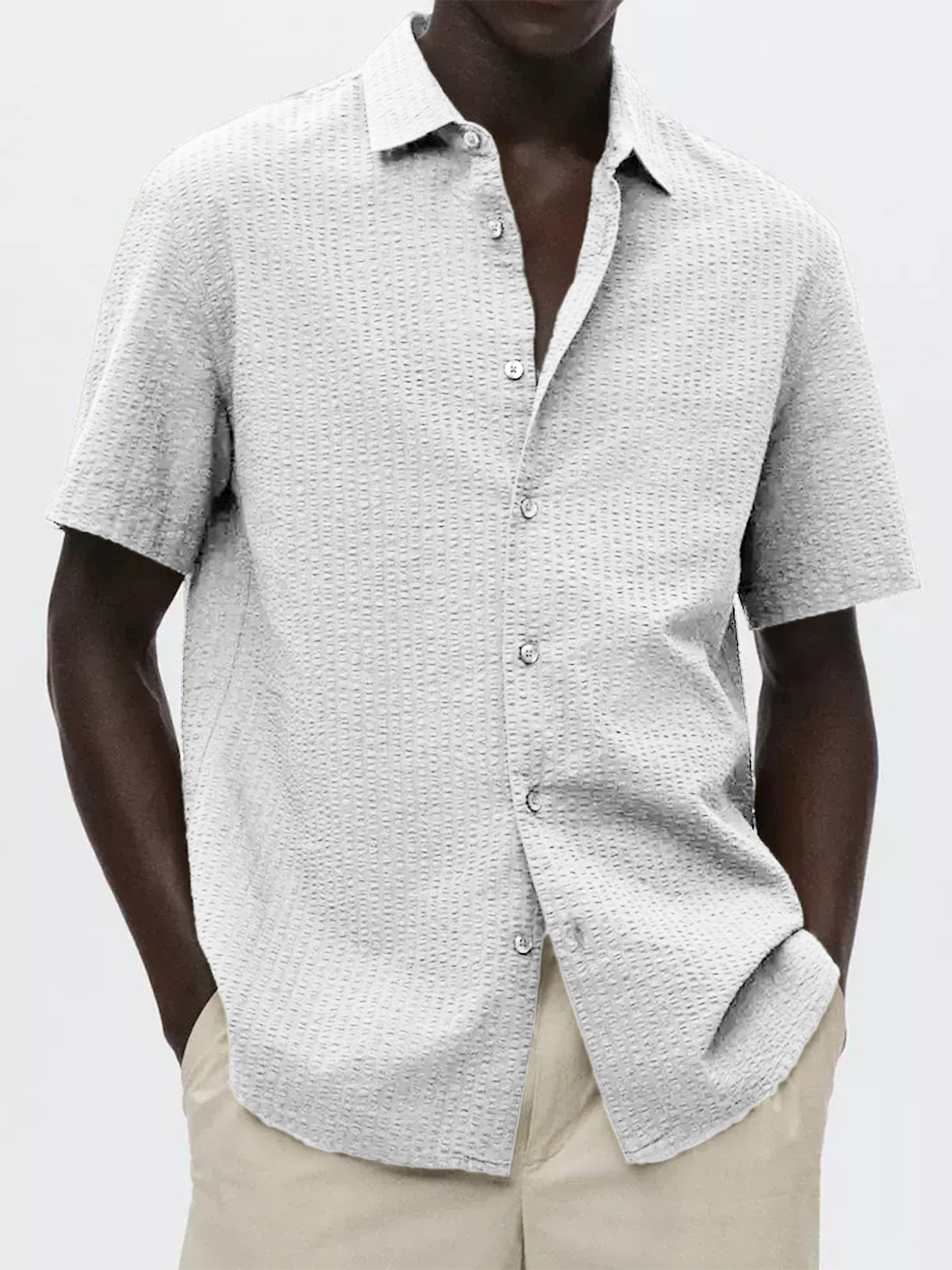 • Men's Textured Seersucker Casual Vacation Lapel Short Sleeve Shirt