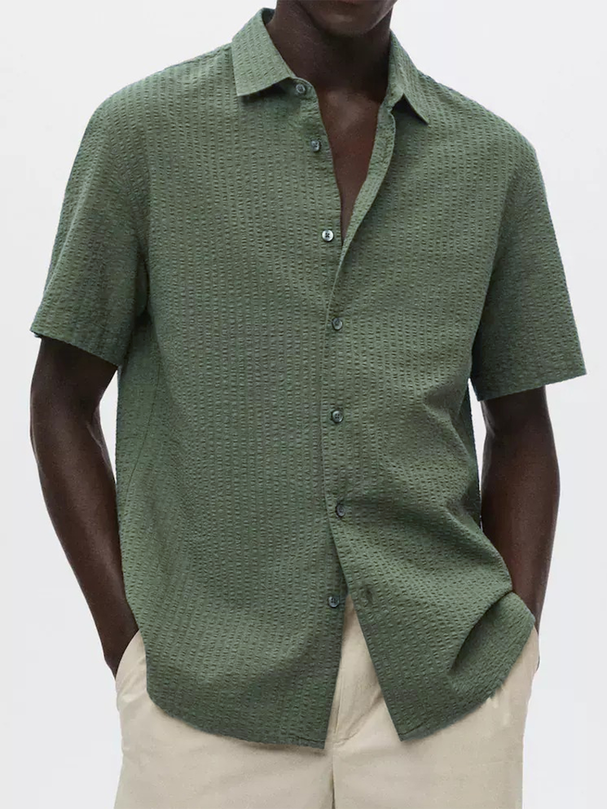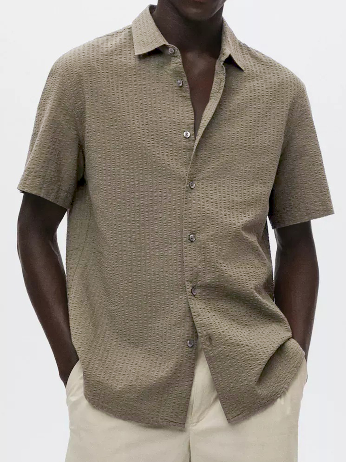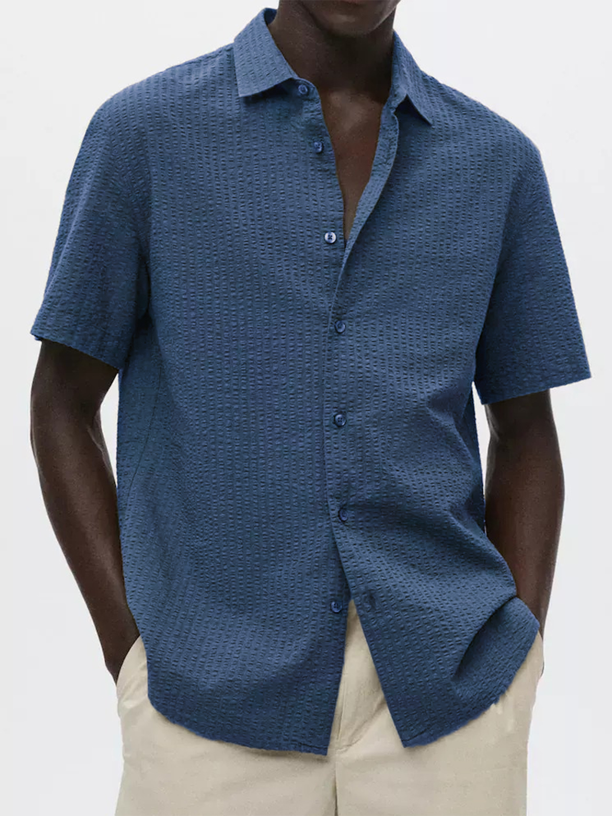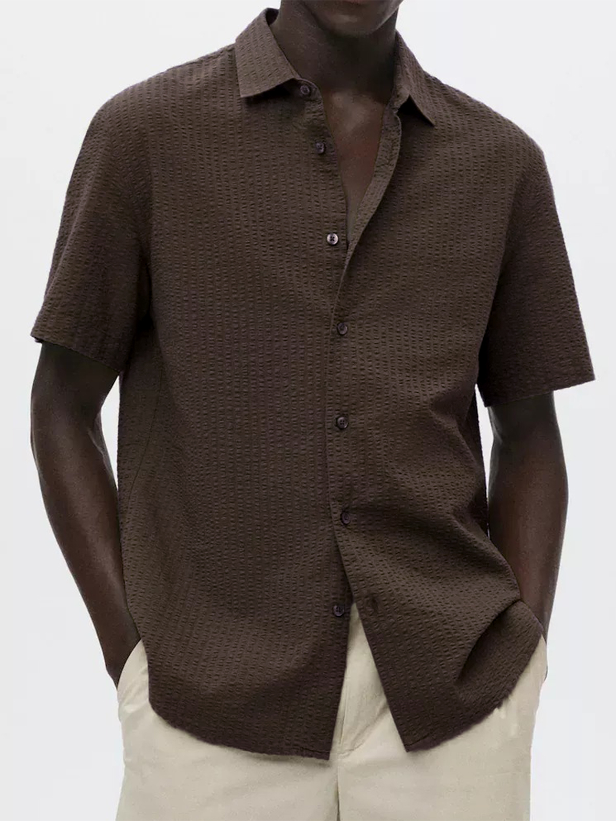 • Men's Textured Seersucker Casual Vacation Lapel Short Sleeve Shirt
