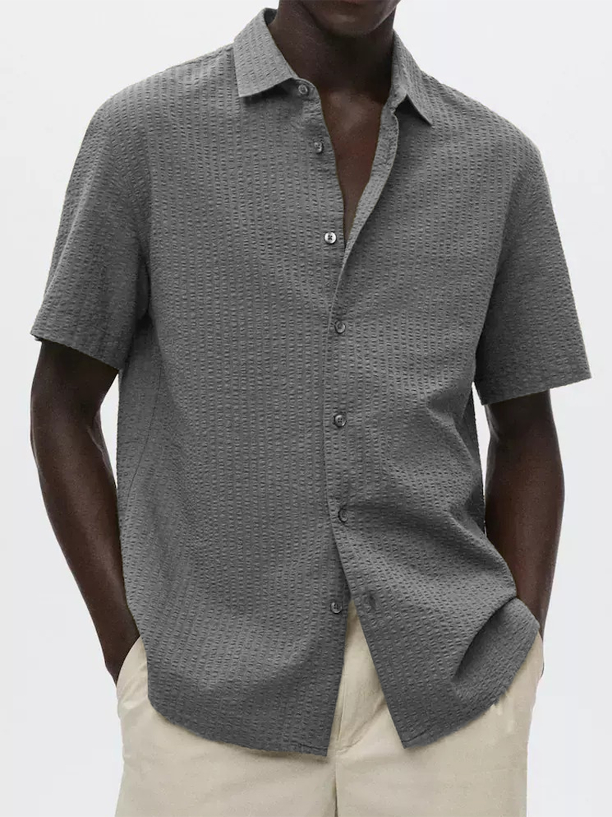 Men's Textured Seersucker Casual Vacation Lapel Short Sleeve Shirt