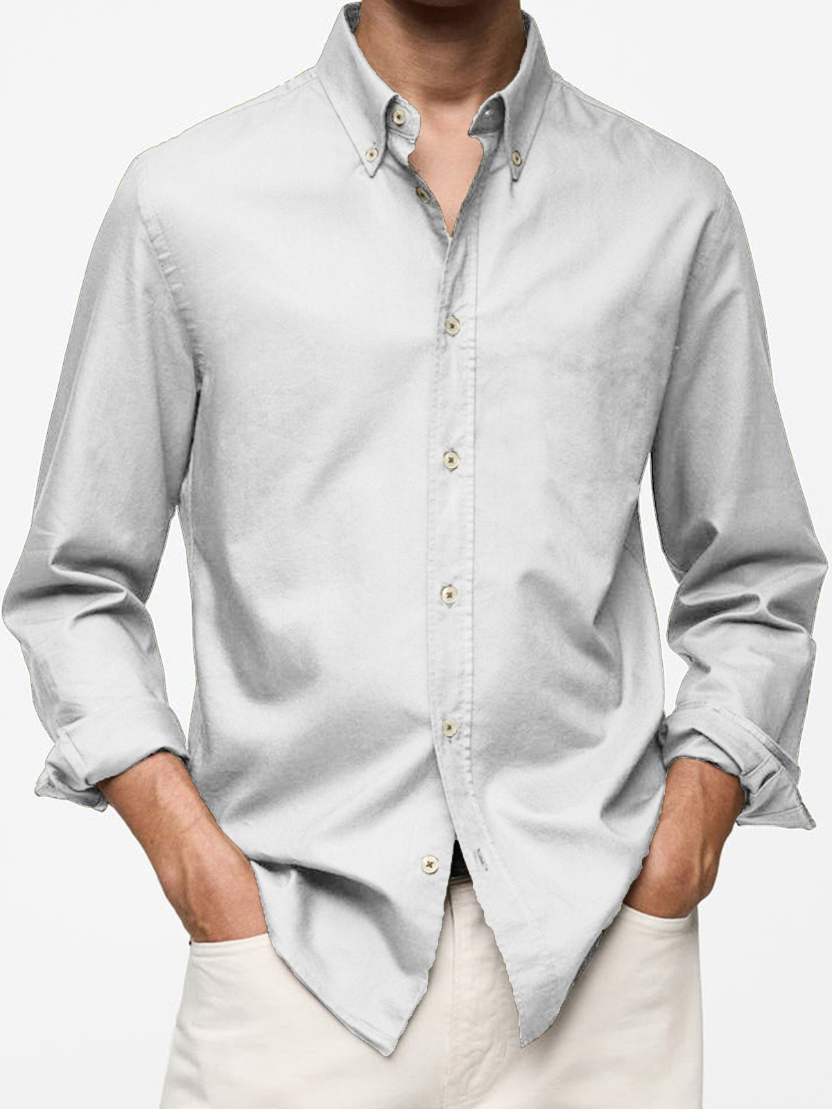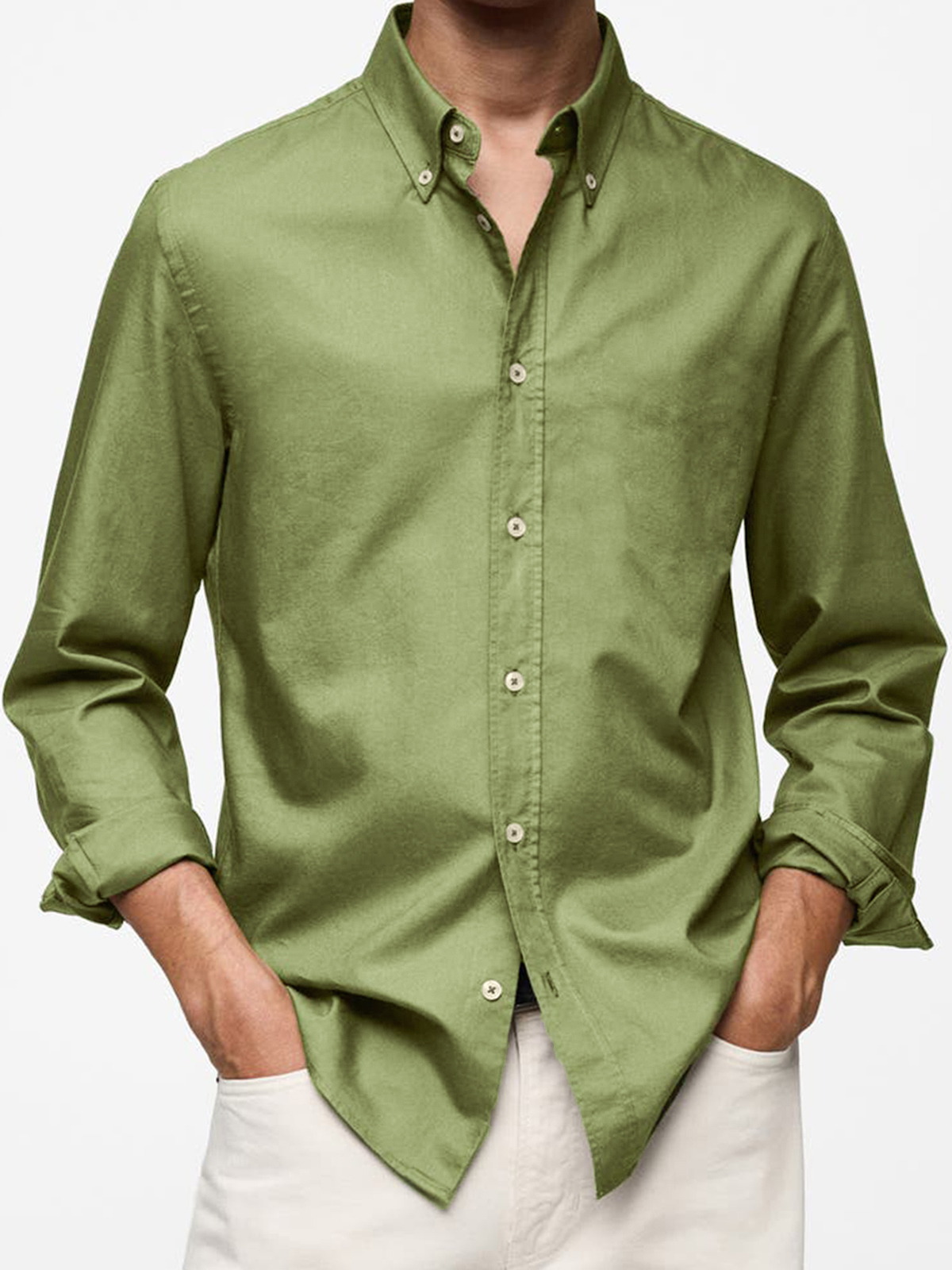 Men's Vintage Cotton Basic Casual Long Sleeve Everyday Lapel Button Shirt