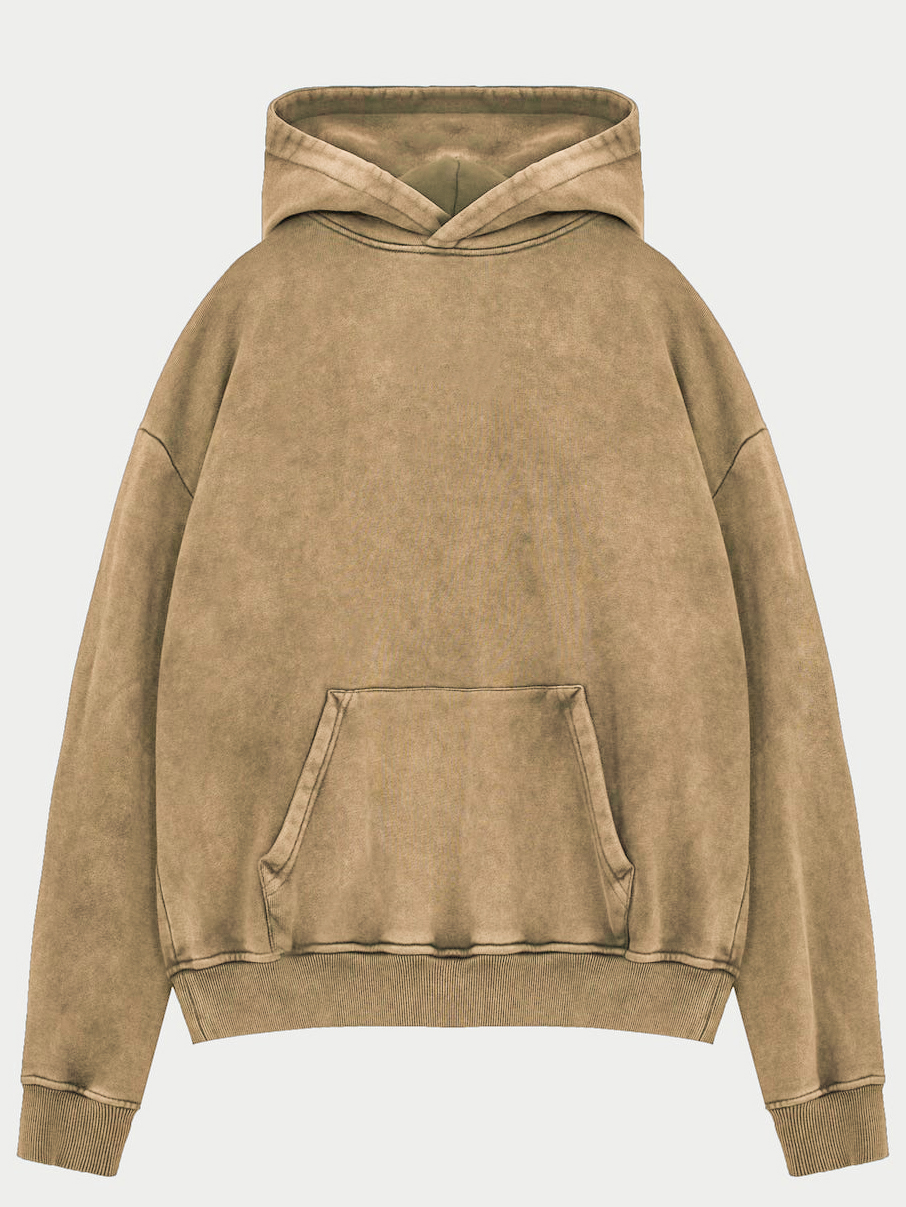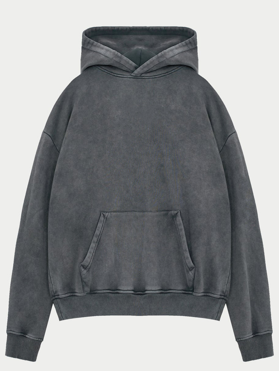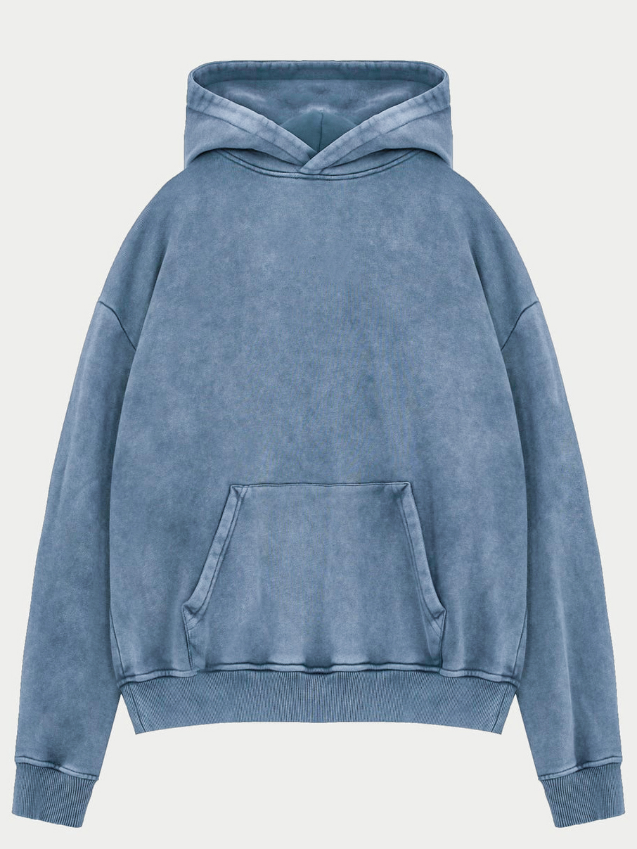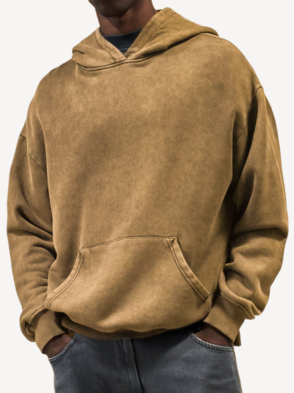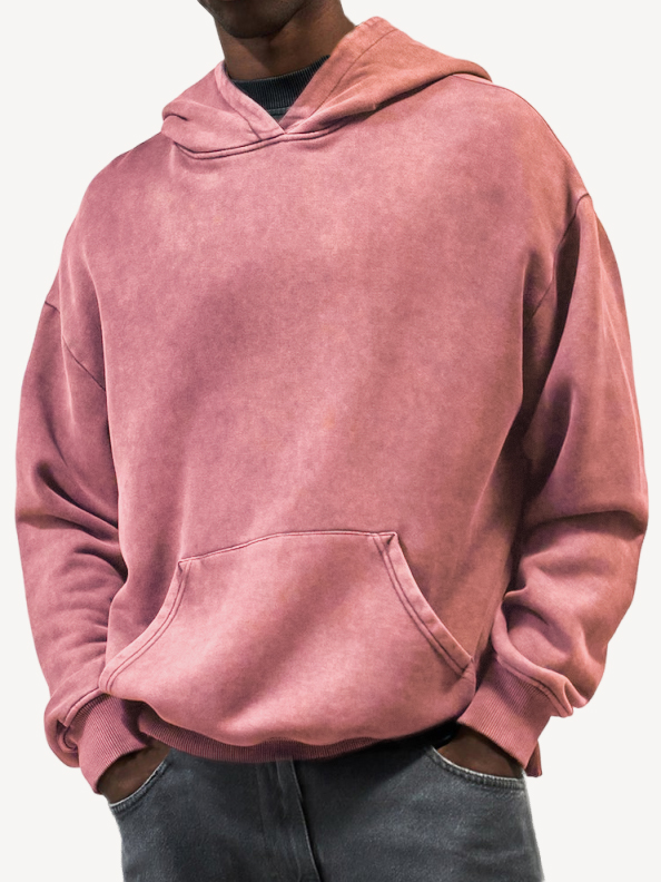 Men's Vintage Washed Distressed Basic Hooded Sweatshirt