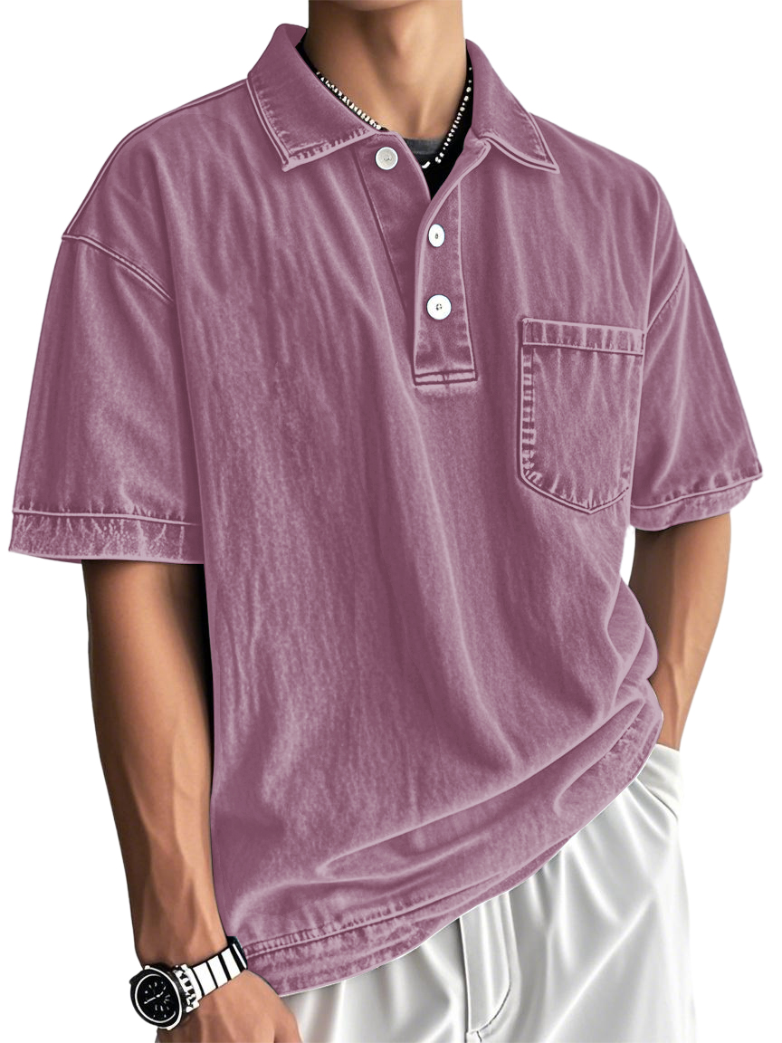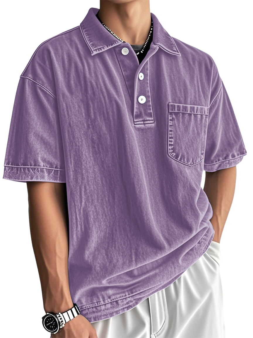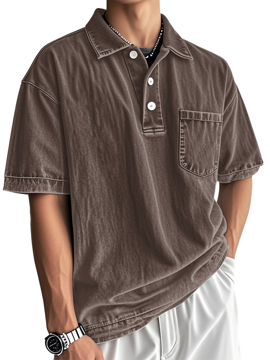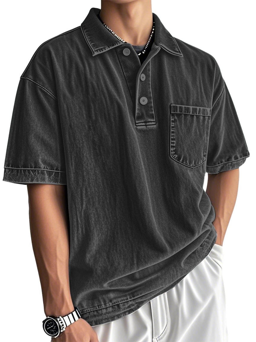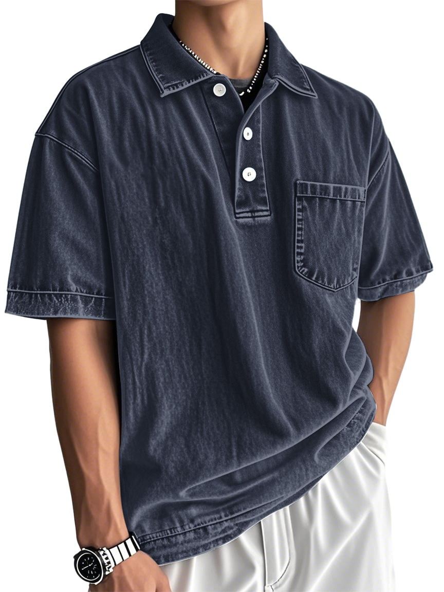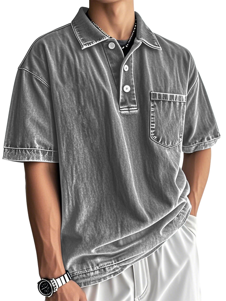 Men's Washed And Distressed Cotton Vintage Casual Polo Shirt