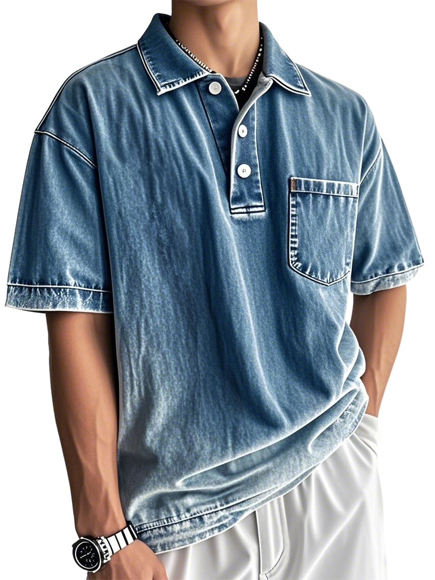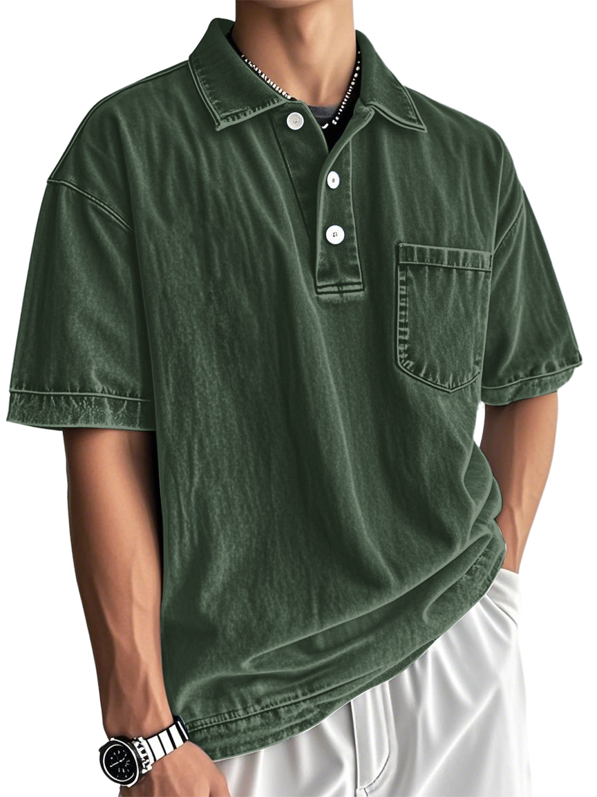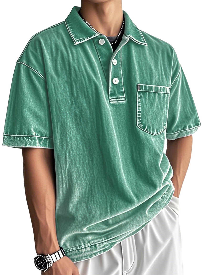 • Men's Washed And Distressed Cotton Vintage Casual Polo Shirt