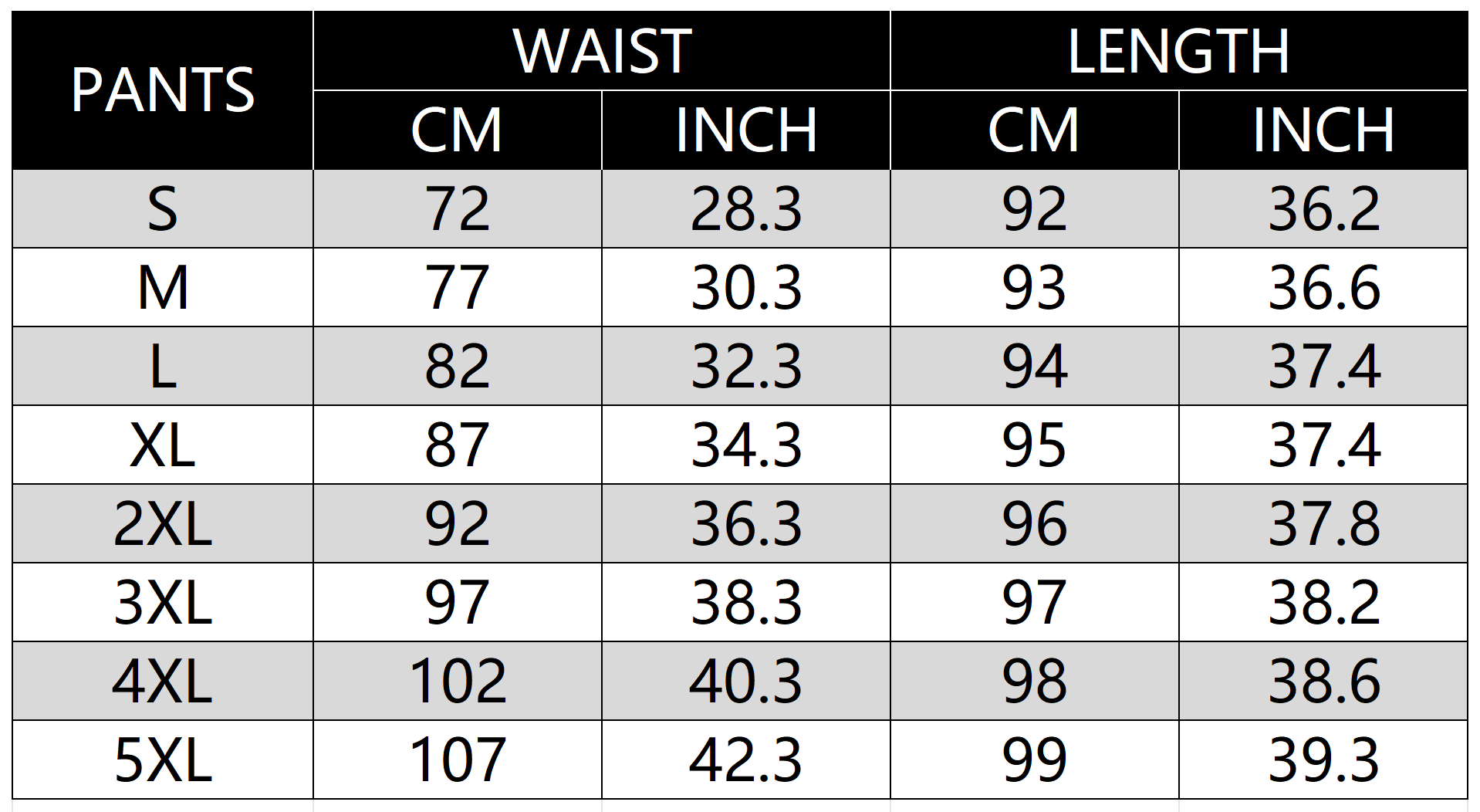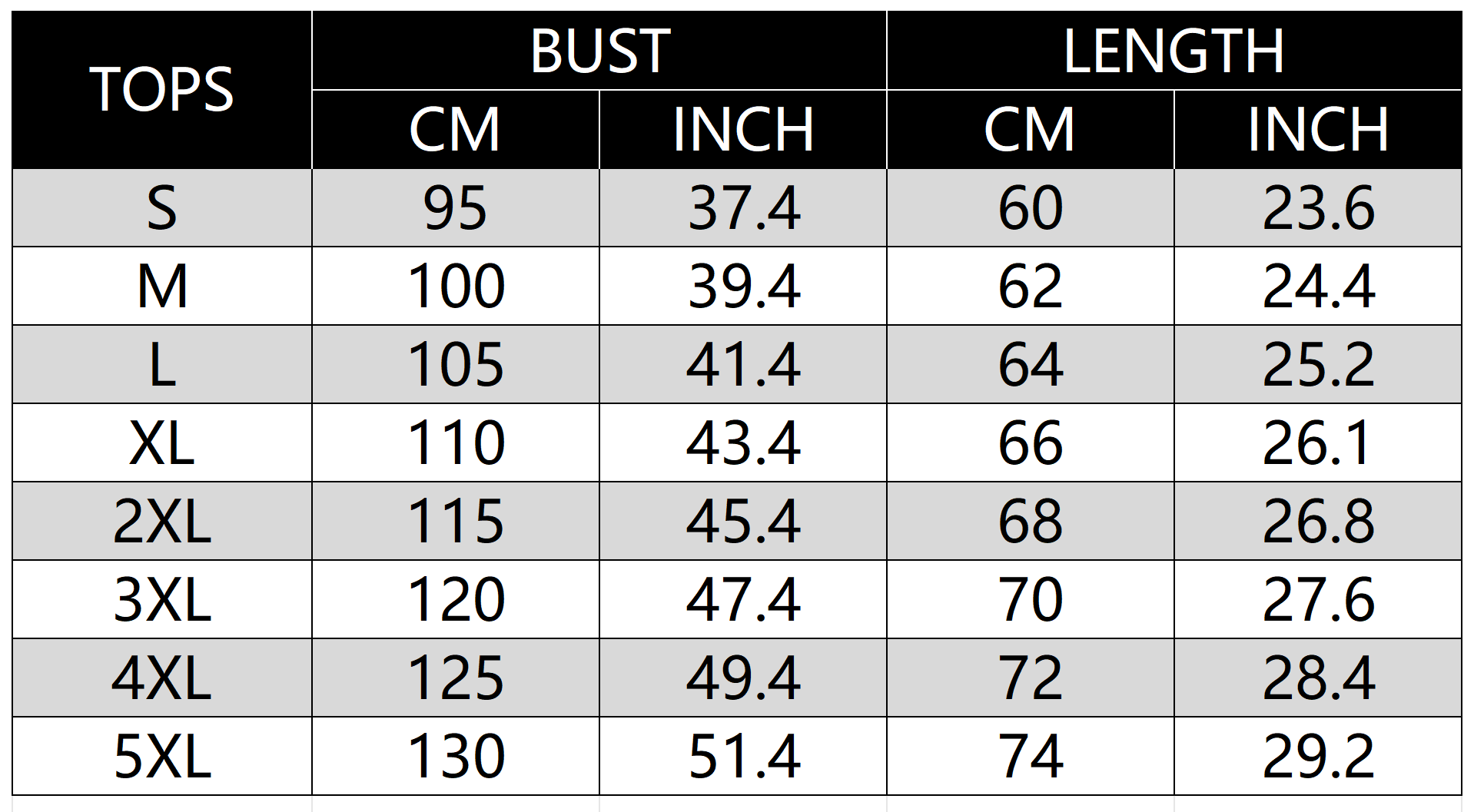 Size Chart: