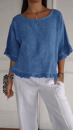 🔥Clearance Sale🔥 Women's Round Neck Ruffled Cotton And Linen Top