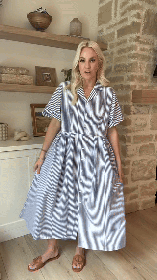Women's Cotton Striped Shirt Dress Button Up Short Sleeve Midi Long Shift Dress with Pockets(Buy 2 free shipping)